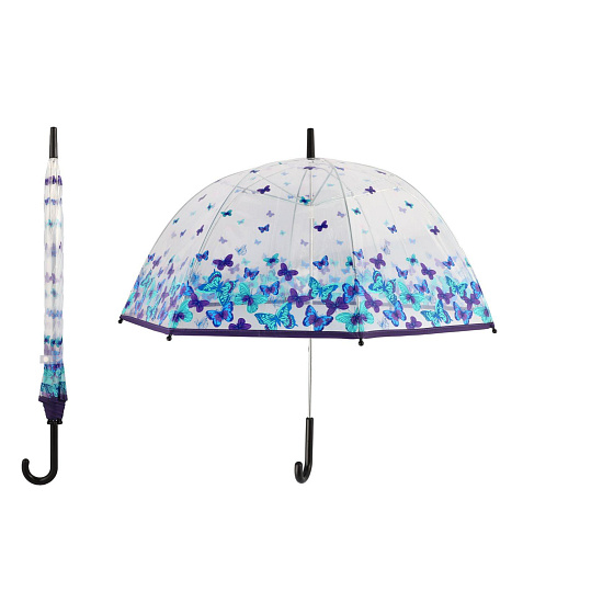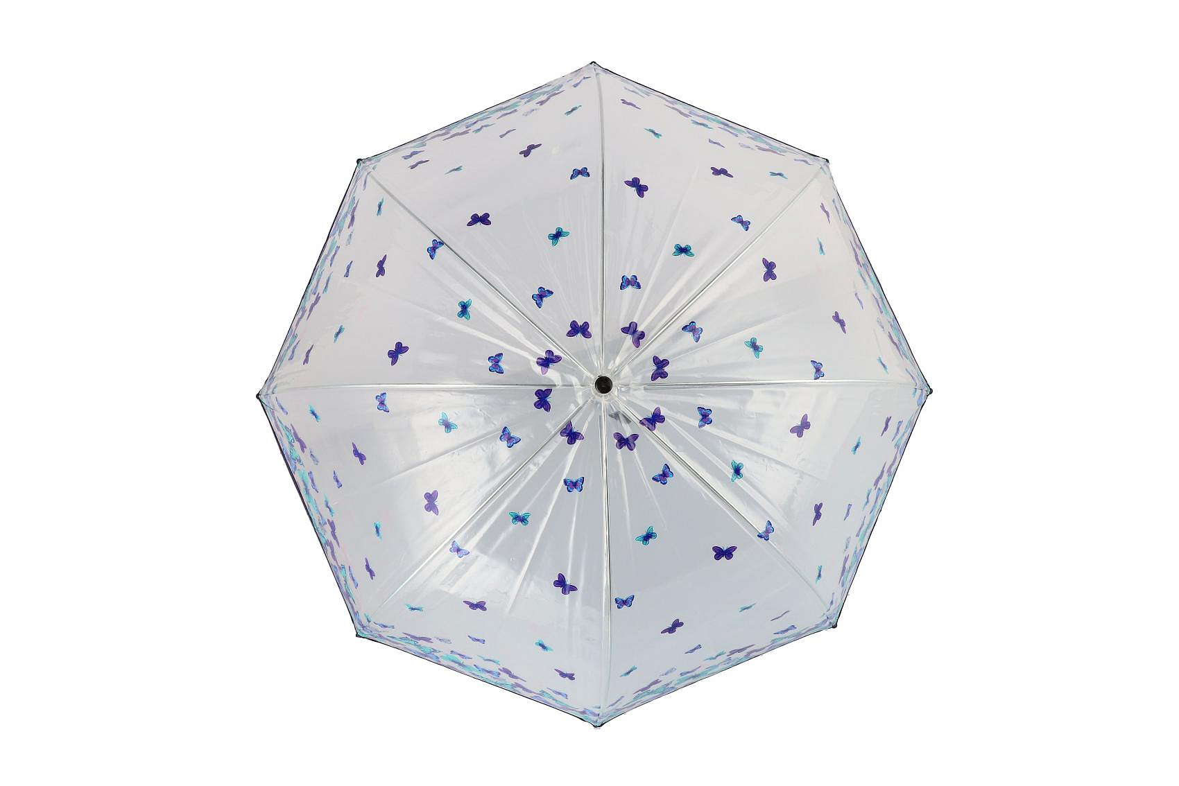 Průhledný deštník s motýlky, o průměru 80 cm. Praktický a stylový doplněk, který rozjasní deštivé dn