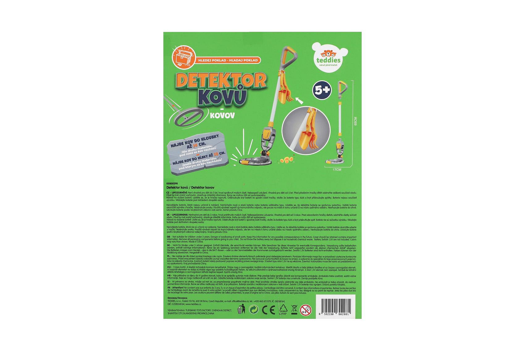 Detektor kovů/hledačka pokladů plast 65cm na baterie se světlem se zvukem v krabici 23x33x7cm