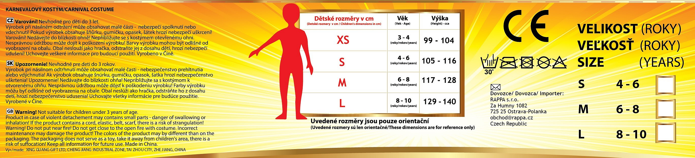 Magický karnevalový kostým pro malé čarodějnice! Kostým černé barvy ve velikosti L je určen pro holčičky ve věkovém rozmezí 8-10 let (128-140 cm). Šaty jsou dekorovány oranžovými stuhami a metalickými hvězdičkami. Součástí kostýmu je perfektně sladěný čarodějnický klobouk. S tímto úchvatným kostýmem se zaručeně staneš hvězdou karnevalu i Halloweenu!