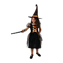 Magický karnevalový kostým pro malé čarodějnice! Kostým černé barvy ve velikosti S je určen pro holčičky ve věkovém rozmezí 3-6 let (105-116 cm). Šaty jsou dekorovány oranžovými stuhami a metalickými hvězdičkami. Součástí kostýmu je perfektně sladěný čarodějnický klobouk. S tímto úchvatným kostýmem se zaručeně staneš hvězdou karnevalu i Halloweenu!