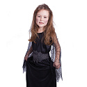 Kostým pro malé čarodějnice! Kostým černé barvy ve velikosti S je určen pro holčičky ve věkovém rozmezí 4-6 let (105-116 cm). Šaty jsou dekorovány průhlednými rukávy s motivem pavučin. S tímto úchvatným kostýmem budeš vypadat jako pravá čarodějka! Skvěle se hodí i na oslavu Halloweenu!