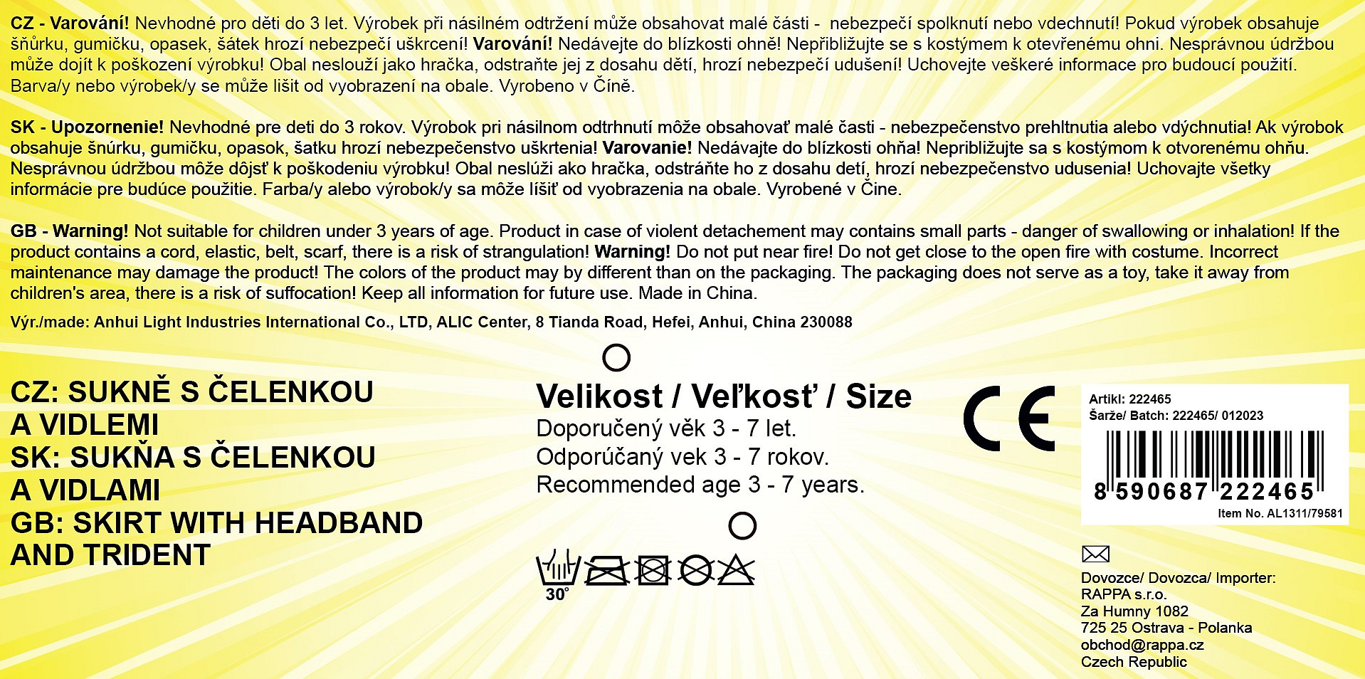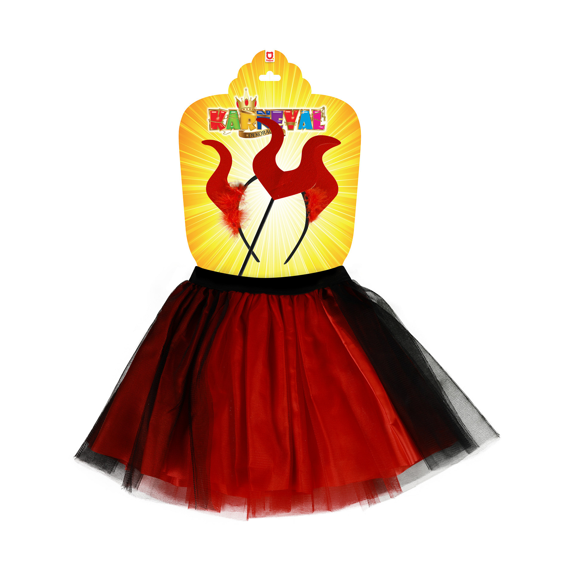 Roztomilá sukýnka TUTU je určena pro holčičky ve věkovém rozmezí 3-7 let (104-146 cm), obvod pasu 46-72 cm. Sukýnka typické červenočerné barvy je v délce 30 cm. Součástí této sady je senzační čelenka s rohy a hůlka!