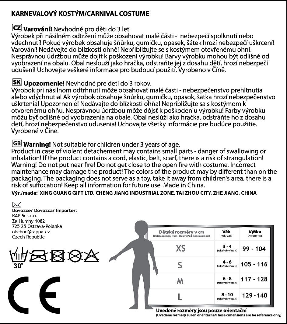 Překrásný dívčí kostým pro malé zimní princezny! Kostým princezny Aničky ve velikosti M je určen pro holčičky ve věkovém rozmezí 6-8 let (117-128 cm). Kostýmek je ušit v černo-modrých barvách, je zdoben zlatým lemováním a součástí je růžový saténový plášť s modrým krystalem. Tento stylový kousek ti nesmí v šatníku chybět! Nejen letos je potřeba myslet EKO-nomicky i EKO-logicky! EKO-balení je vhodné zejména pro e-shopy kde zákazník nakupuje dle fotografie a není třeba velkého balení s věšákem. EKO-logicky – na balení bylo použito méně plastu a dalších materiálů. Jedná se o malý transparentní obal s fotografií. EKO-nomicky –EKO-obal zabere jen polovinu místa – šetřete skladová místa s námi!