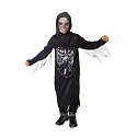 Strašidelný karnevalový kostým s motivem smrtky! Kostým ve velikosti S je určen pro děti ve věkovém rozmezí 4-6 let (105-116 cm). Balení obsahuje černý hábit s bílým potiskem kostry a kapuci. Součástí kostýmu je řetěz. Neobsahuje kosu.
