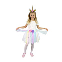 Roztomilá saténová sukýnka TUTU je zdobena barevným tylem s dekorem hvězdiček. Je určena pro holčičky ve věkovém rozmezí 3-10 let (104-146 cm), v pase je na gumu a její délka je cca 26 cm. Součástí této sady je senzační čelenka jednorožce se zlatým rohem a ušima!