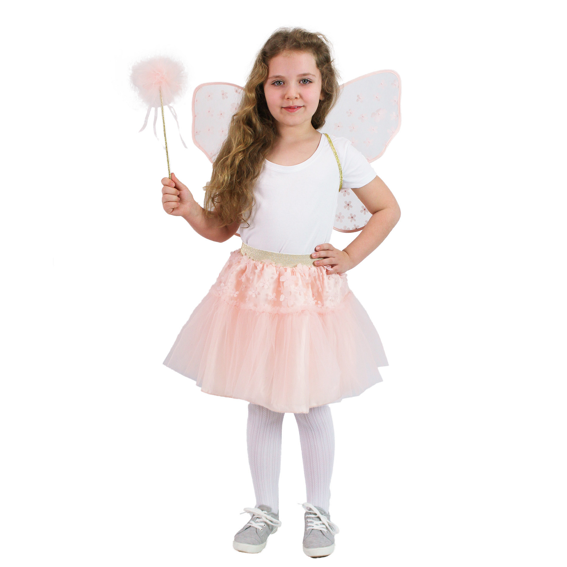 Dětský kostým tutu sukně květinová víla Růženka s hůlkou a křídly