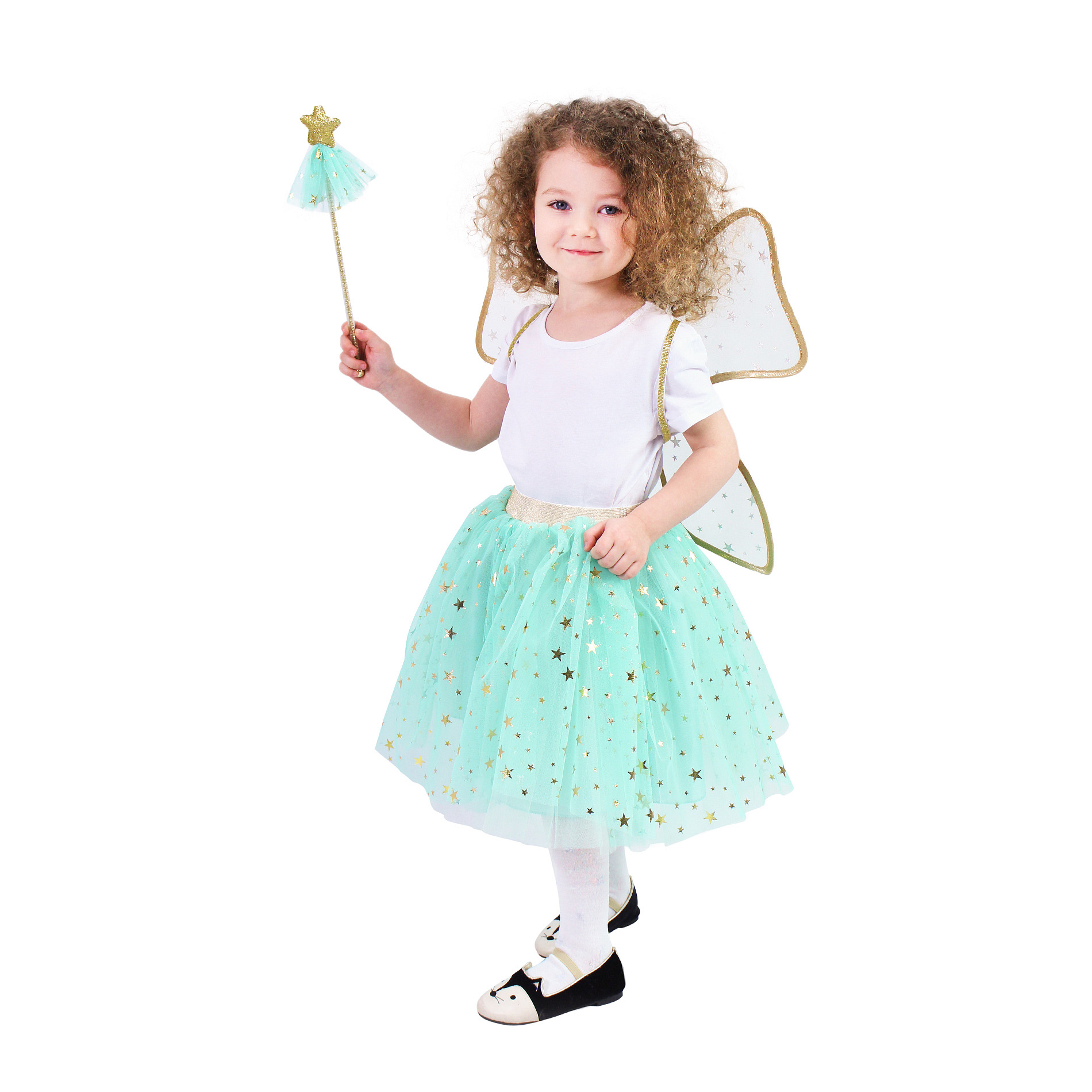 Krásná vílí sada pro malé holčičky! Sada obsahuje zelenou tylovou TUTU sukýnku s potiskem zlatých hvězdiček a zlatou gumou v pase, k tomu perfektně sladěná křídla a hůlku ve stejném motivu. Sukně je dlouhá cca 35 cm a je vhodná pro obvod pasu 50-60 cm. Určeno pro holčičky ve věkovém rozmezí 3-10 let (104-146 cm). Nejen letos je potřeba myslet EKO-nomicky i EKO-logicky! EKO-balení je vhodné zejména pro e-shopy kde zákazník nakupuje dle fotografie a není třeba velkého balení s věšákem. EKO-logicky – na balení bylo použito méně plastu a dalších materiálů. Jedná se o malý transparentní obal s fotografií. EKO-nomicky –EKO-obal zabere jen polovinu místa – šetřete skladová místa s námi!