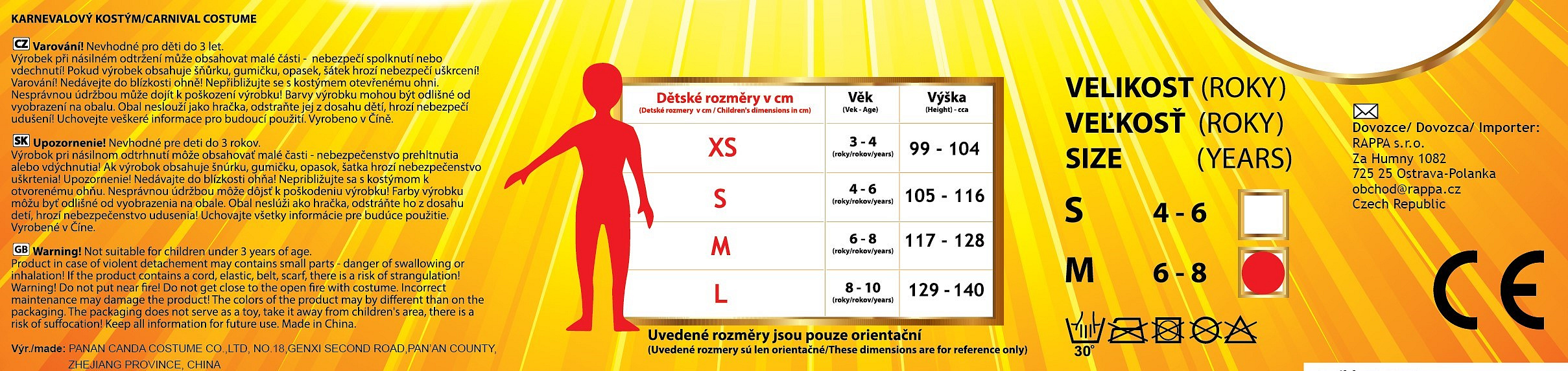 Úžasný kostým pro malé veterinářky! Kostým ve velikosti S je určen pro holčičky ve věkovém rozmezí 4-6 let (105-116 cm). Sada obsahuje blůzu s kalhotami v růžové barvě se stylovým zvířecím potiskem. Součástí balení je také rouška. Nejen letos je potřeba myslet EKO-nomicky i EKO-logicky! EKO-balení je vhodné zejména pro e-shopy kde zákazník nakupuje dle fotografie a není třeba velkého balení s věšákem. EKO-logicky – na balení bylo použito méně plastu a dalších materiálů. Jedná se o malý transparentní obal s fotografií. EKO-nomicky –EKO-obal zabere jen polovinu místa – šetřete skladová místa s námi!