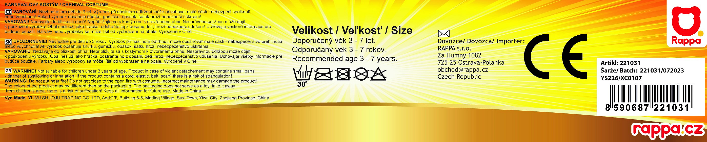 Senzační plášť pro všechny čarodějnice a čaroděje! Plášť na zavazování je určen pro děti od 3 do 7 let. Tento stylový kousek má límeček a je dekorován balevným metalickým potiskem lebek. Vhodný i na oslavu Halloweenu.