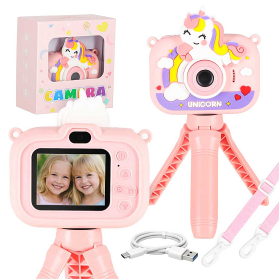 APARAT FOTOGRAFICZNY Z MOTYWEM JEDNOROŻCA - ZESTAW STATYW, PODWÓJNY APARAT, 1080P
