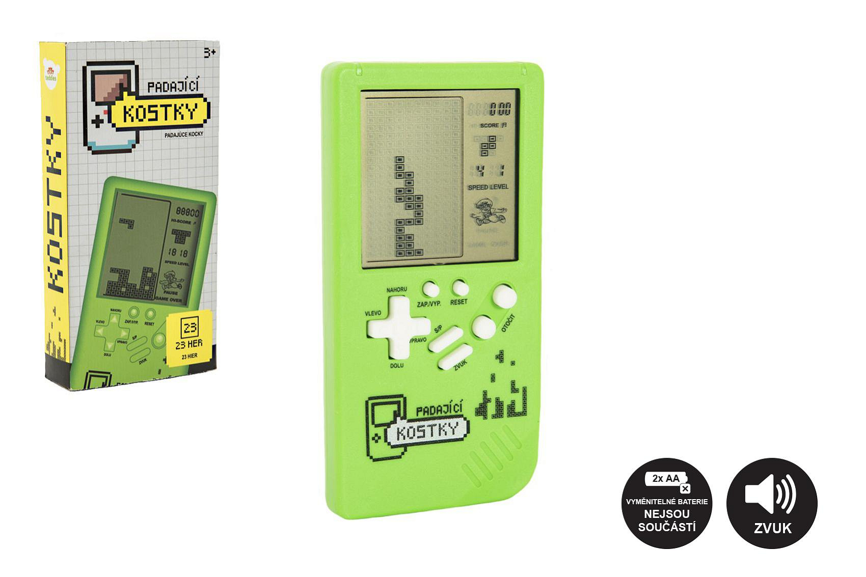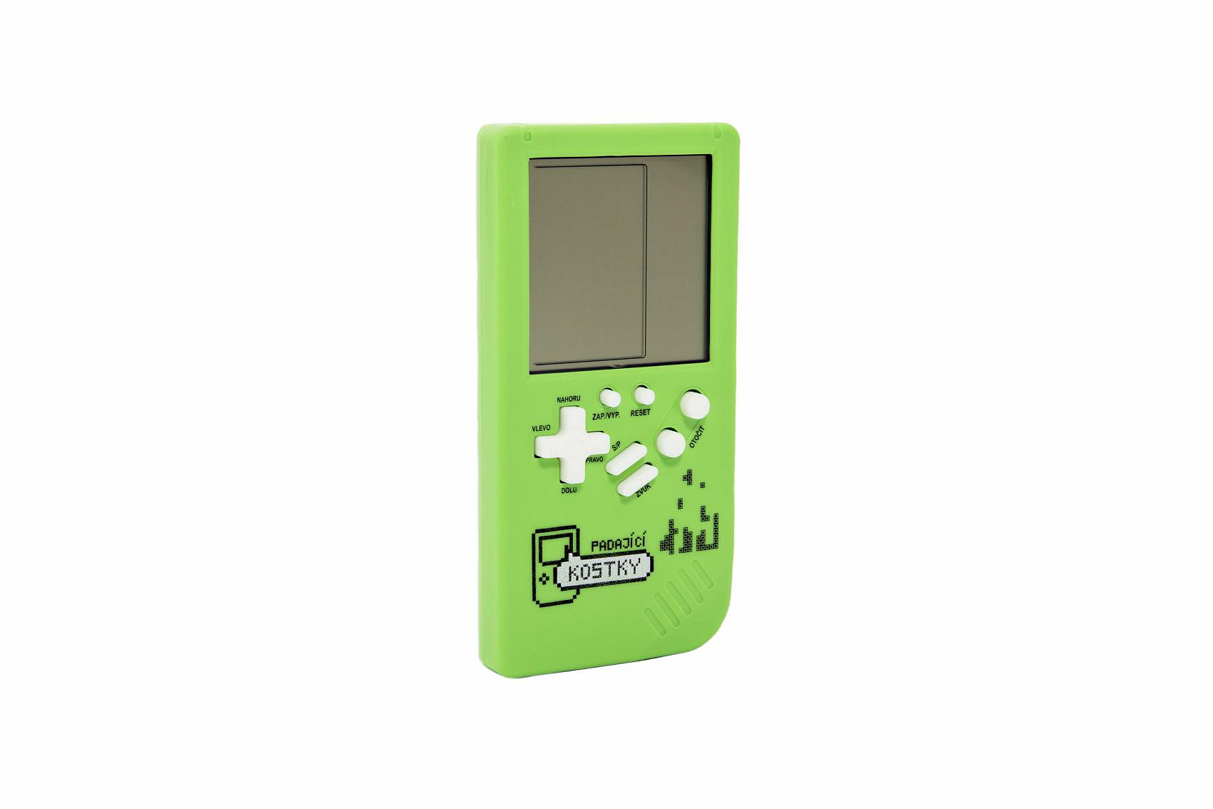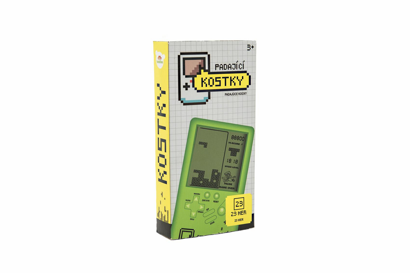 Digitální hra Padající kostky hlavolam plast 7x14cm zelená na baterie se zvukem v krabičce 7,5x14,5