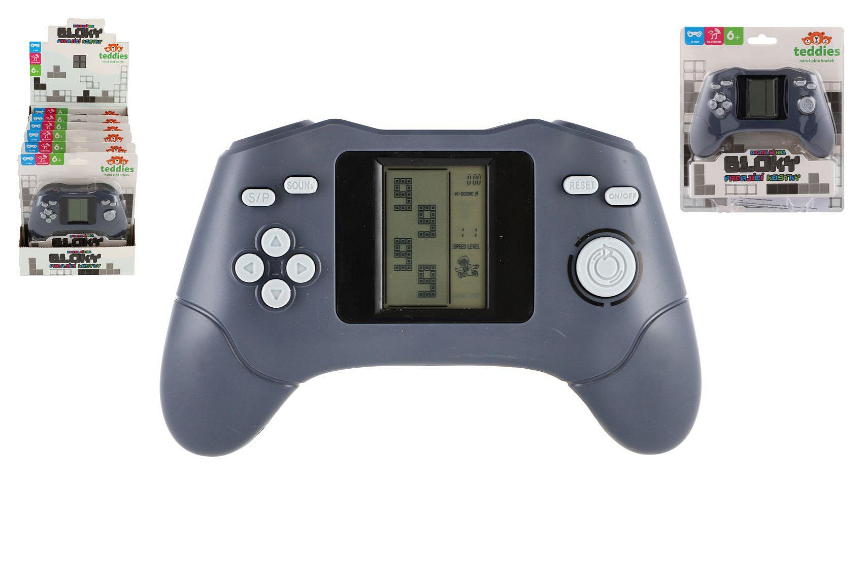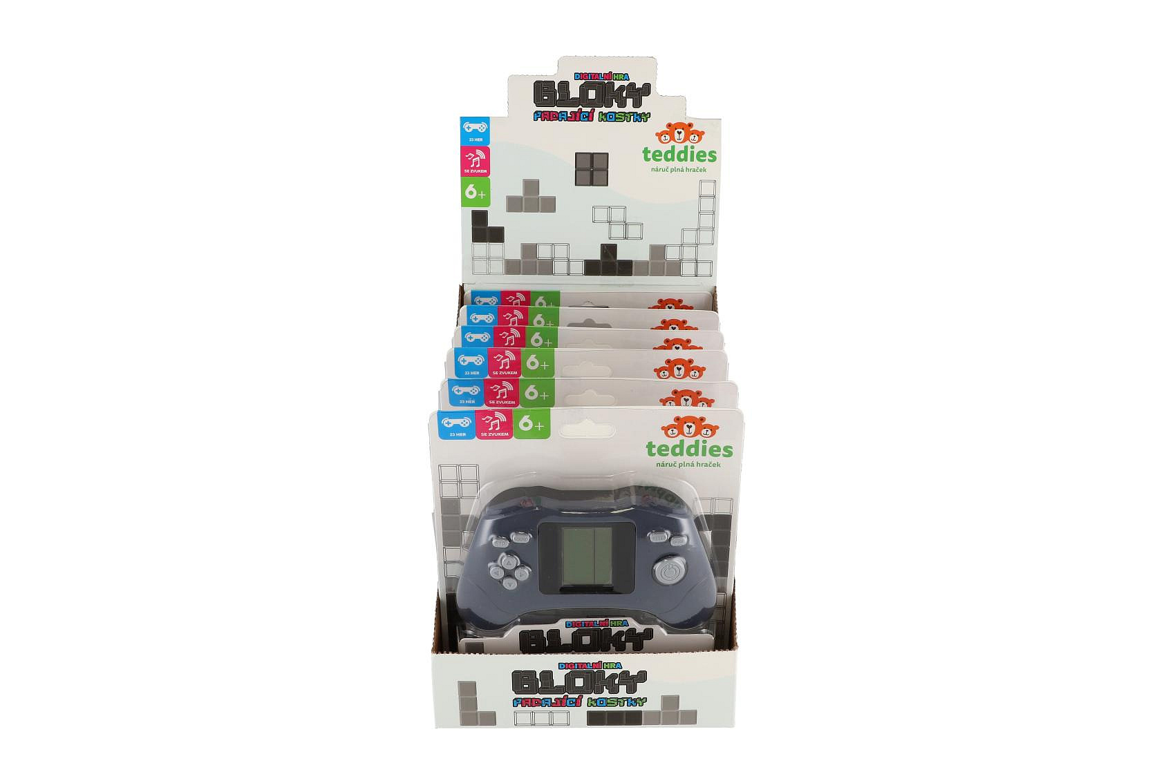 Digitální hra Padající kostky konzole hlavolam plast 15x9cm na baterie se zvukem na kartě 6ks v boxu