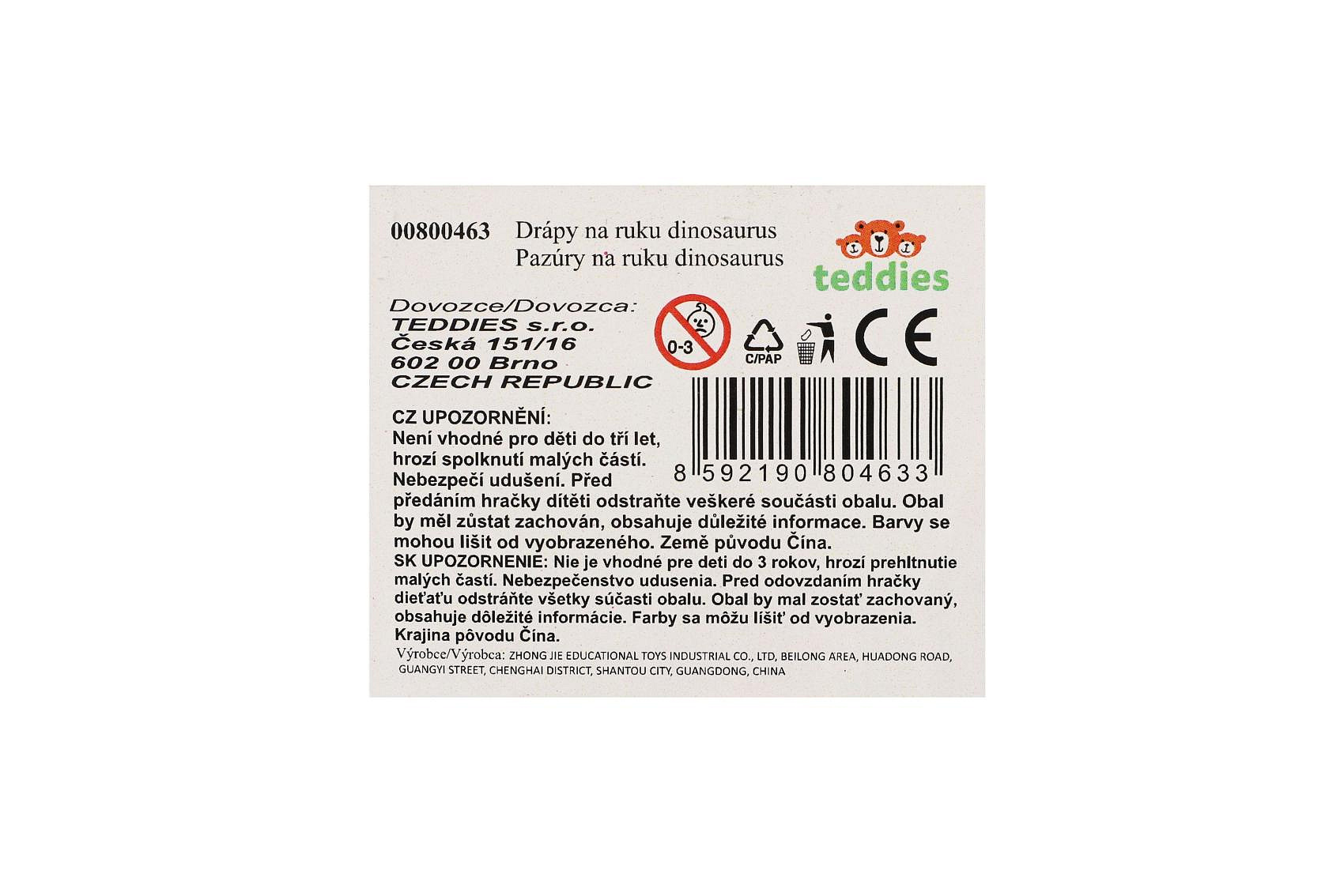 Dinosaurus tlapa/drápy na ruku guma 15x23cm 3 druhy 12ks v boxu karneval