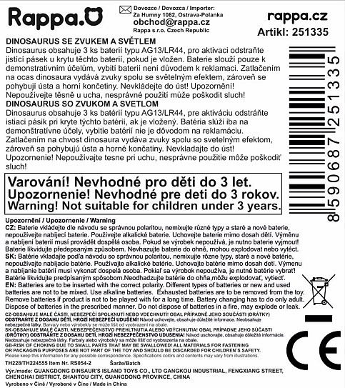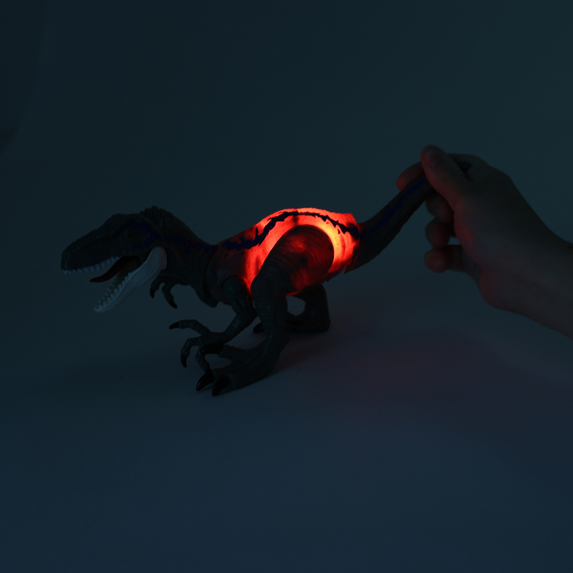 Zažij prehistorické dobrodružství s tímto Velociraptorem! Dinosaurus je vybaven zvukovým a světelným efektem – při zatlačení na ocas vydává hrozivý řev a současně se rozsvítí světlo, které umocní dramatický efekt. Při stisknutí hlavy se Velociraptorovi otevřou ústa a pohybují se jeho přední končetiny, což dává hře ještě dynamičtější rozměr. Díky pohyblivým částem si děti užijí hodiny zábavy při objevování světa dinosaurů. Pro světelný a zvukový efekt je potřeba 3 ks baterií typu AG13, které jsou uvnitř výrobku.