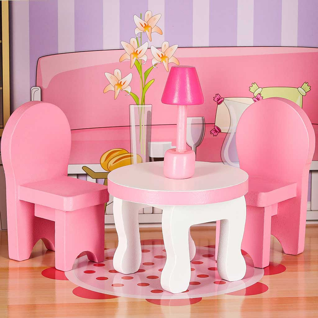 ESTETYCZNEI SOLIDNE WYKONANIE – szczegóły w formie miniaturek mebelków oraz kolorowe grafiki zachwycają i sprawiają, że domki dla lalek są wyjątkowe.