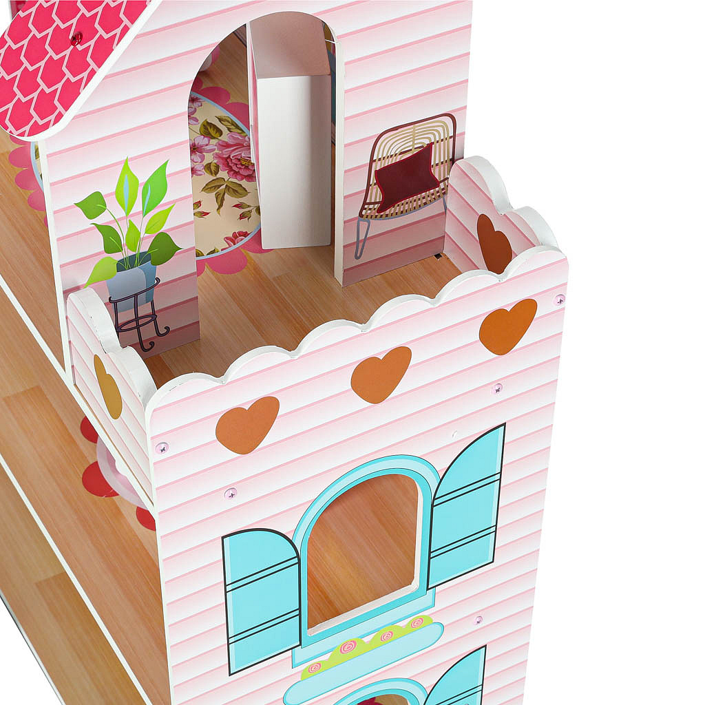 Piętrowe domki dla lalek zostały wyposażone w 5niezależnych pomieszczeń oraz taras.