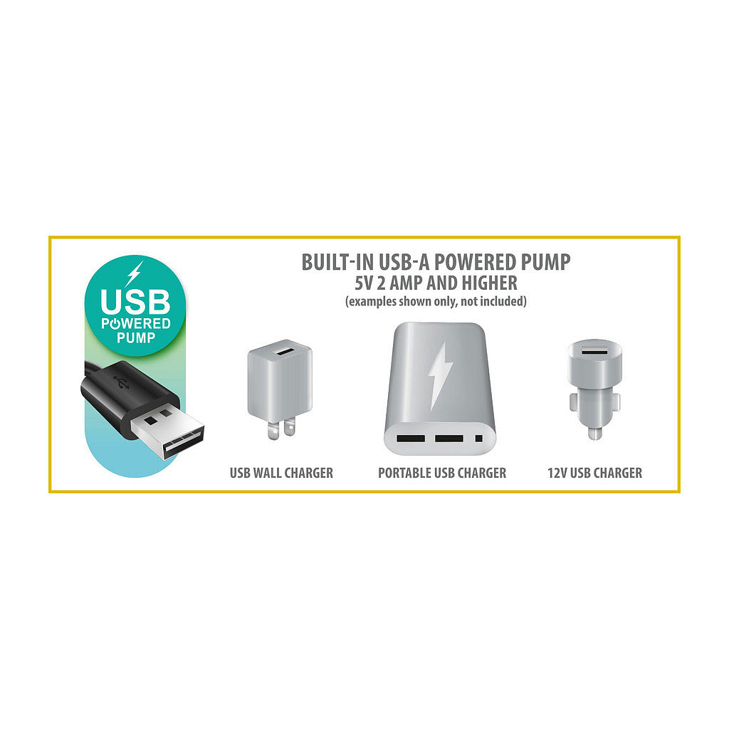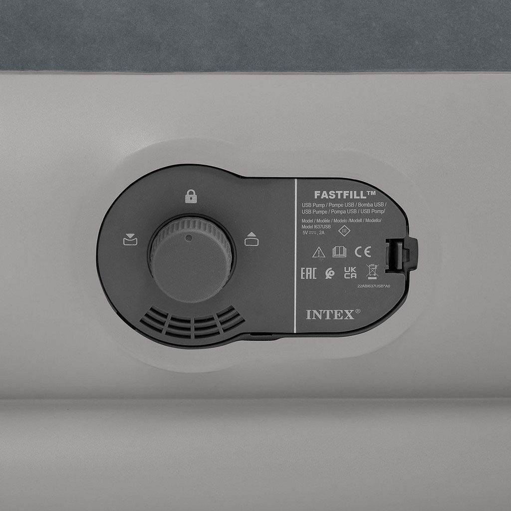 The built-in electric pump makes inflating the mattress quick and effortless, with no need for additional accessories. The pump can be powered via 12V (e.g., car socket) or common 5V/2A sources such as power banks, phone chargers, or USB ports. This means you can inflate the mattress virtually anywhere – on a campsite, in a tent, during travel, or at home.