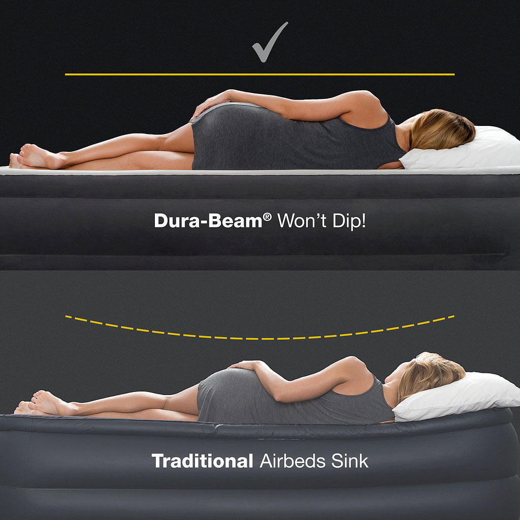 Dura-Beam technology was created to strengthen the internal structure, ensuring the mattress maintains its shape and stability even under heavy load. Instead of traditional empty air chambers, INTEX uses a dense network of fiber-supported cells, preventing sagging and eliminating the “rocking” effect. This gives users not only greater comfort but also better spinal support, which has a real impact on sleep quality.