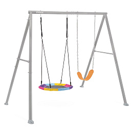 Looking to create a safe playground in your backyard? The INTEX 44126 double garden swing is a perfect solution for families with children. It combines a classic swing with a flexible seat and a nest swing, offering variety and fun. With its colorful design and ergonomic shape, it fits any garden and is suitable for up to three children at once. Choose the INTEX garden swing and turn your garden into a true playground paradise!