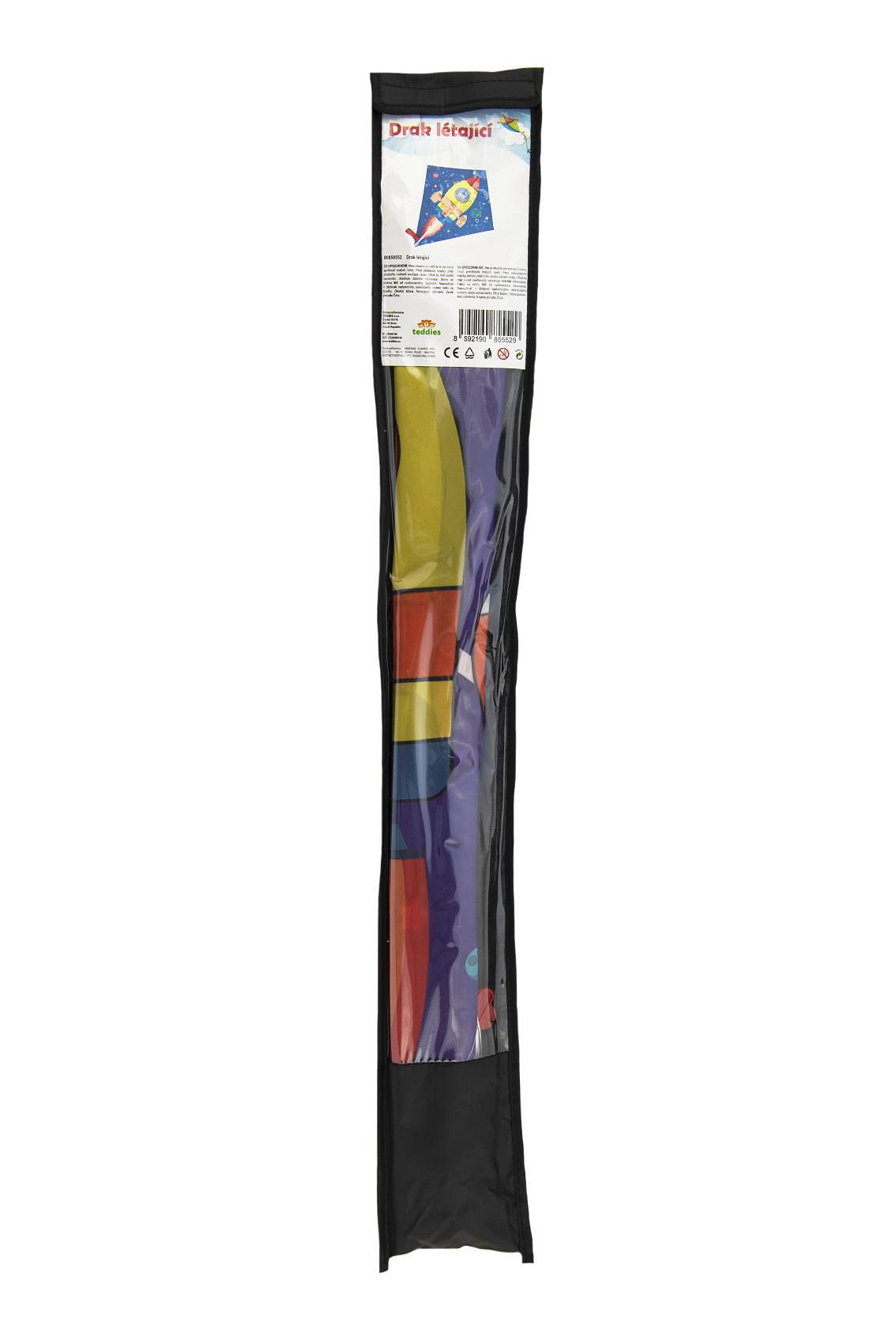 Drak létající nylon 70x60cm kosmická raketa v sáčku 10x72cm