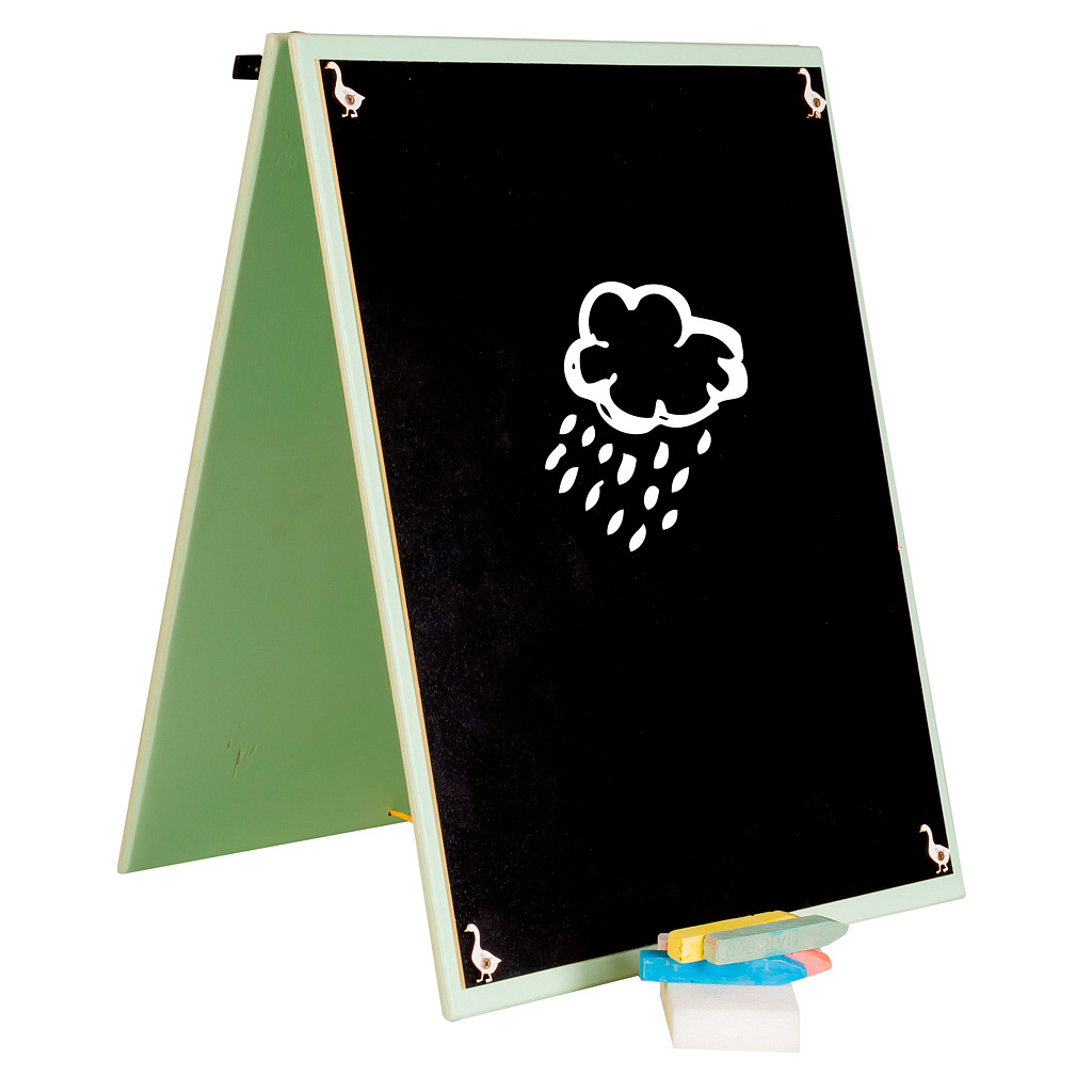 Jednak to nie wszystko! Na wypadek gdyby Twoje dziecko miało ochotę też porysować, z drugiej strony produktu znajduje się tablica kredowa. A w zestawie jest kreda i gąbka do ścierania – tak aby wszystko było od razu pod ręką!