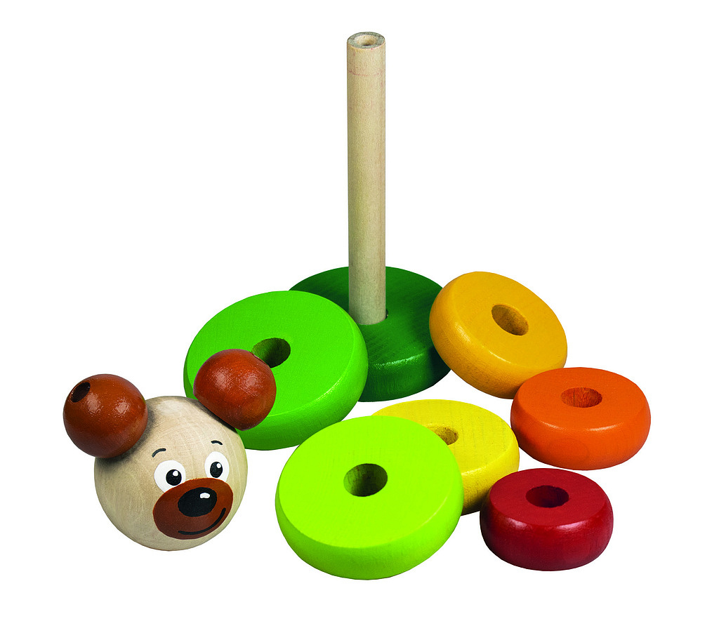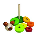 Děti skládají pyramidu z dřevěných kroužků a na vrcholek nasadí hlavičku pejska. Balení obsahuje 8 dřevěných dílků. Výška pyramidy: 17 cm Rozměr krabičky: 7 x 17,5 x 7 cm Vhodné pro děti od 12 měsíců