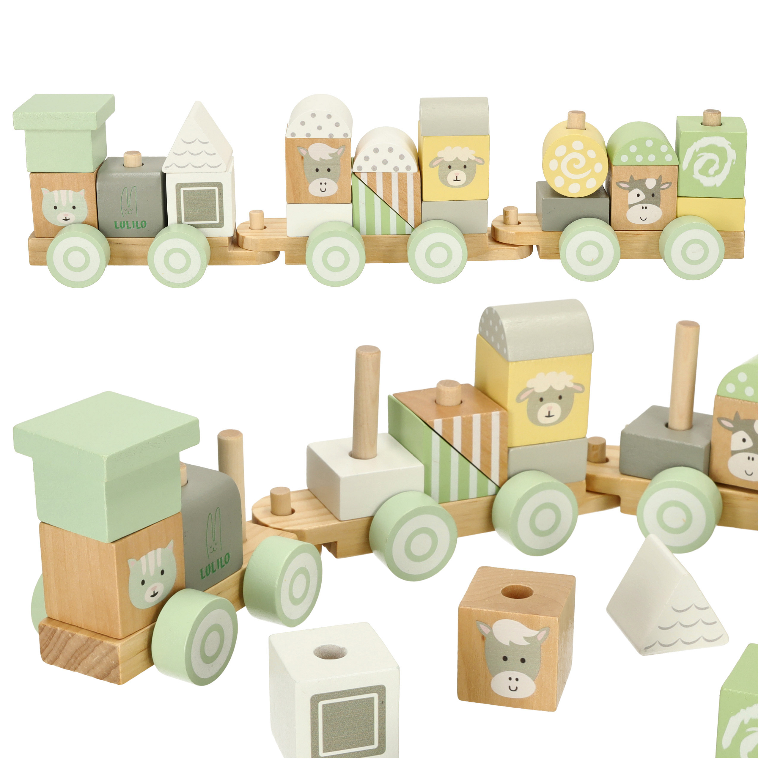 POCIĄG KOLEJKA DREWNIANA PASTELOWY LULILO