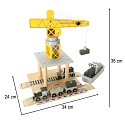 interaktywna zabawa – żuraw jest centralnym elementem zabawki, który umożliwia dziecku obracanie i unoszenie kontenerów, symulując przy tym pracę prawdziwego portu przeładunkowego