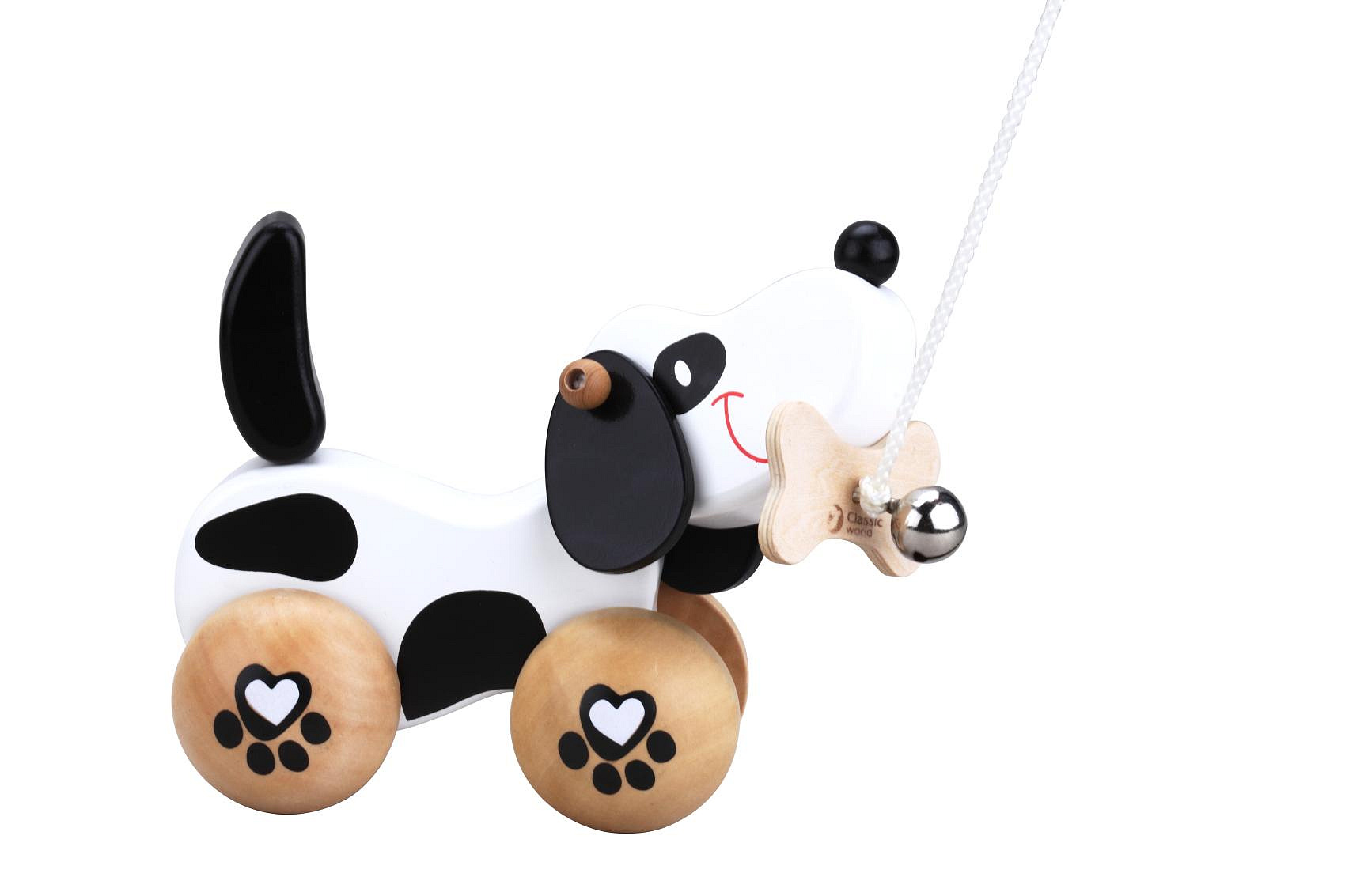 Popis Pes/Pejsek s rolničkou tahací dřevo v krabici 22x14x10cm 12m+