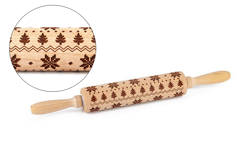 Vánoční váleček na těsto se vzorem Váleček se vzorkem vánočních motivů je skvělou dekorací do vaší kuchyně, ale také ho využijete pro přípravu chutných sušenek nebo na ozdobení potahovacího fondánu při zdobení dortů. S touto skvělou pomůckou bude sváteční pečení krásnější a voňavější. délka celková: 38 cm délka plochy válečku: 19 cm průměr: 4,5 cmVíce