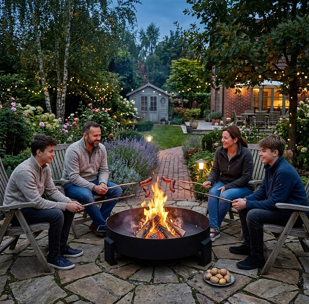 The ash produced from burning wood in the fire pit can be practically reused in the garden. It is a natural source of minerals that support plant growth and improve soil structure. It can be used for vegetables, flowers, and ornamental plants, and also helps reduce the presence of slugs. This makes the fire pit not only a source of atmosphere but also a way to eco-friendly reuse fire residues.