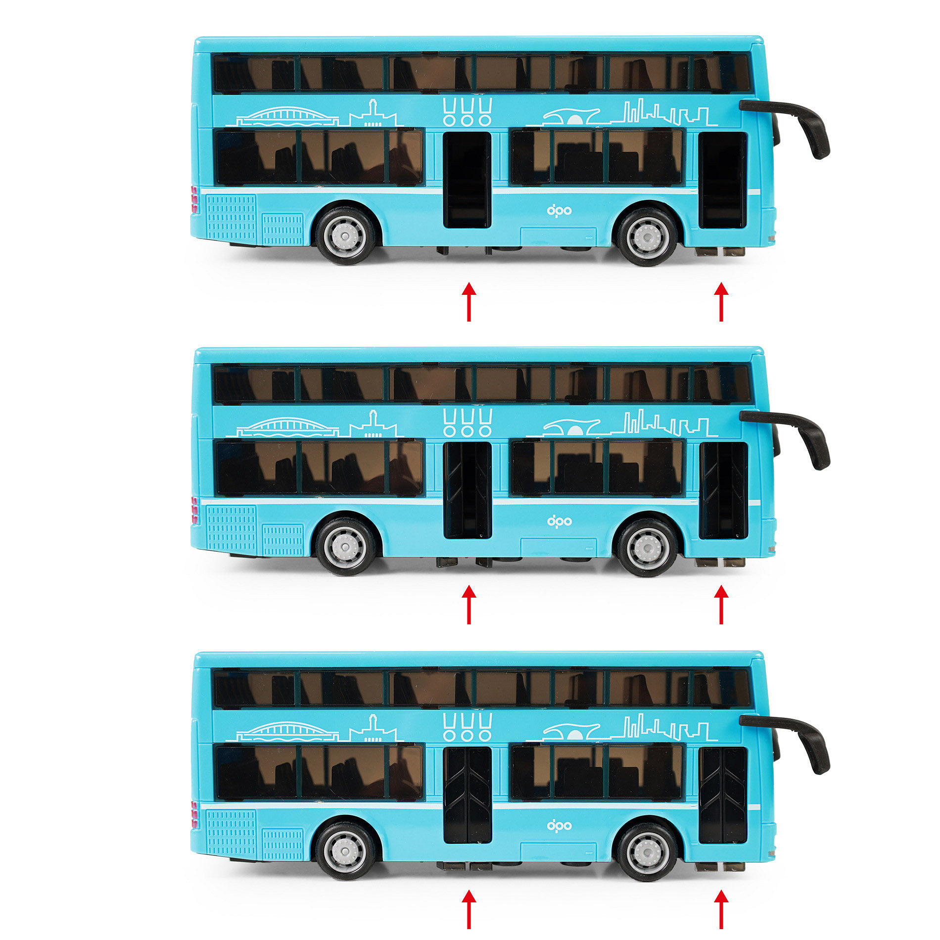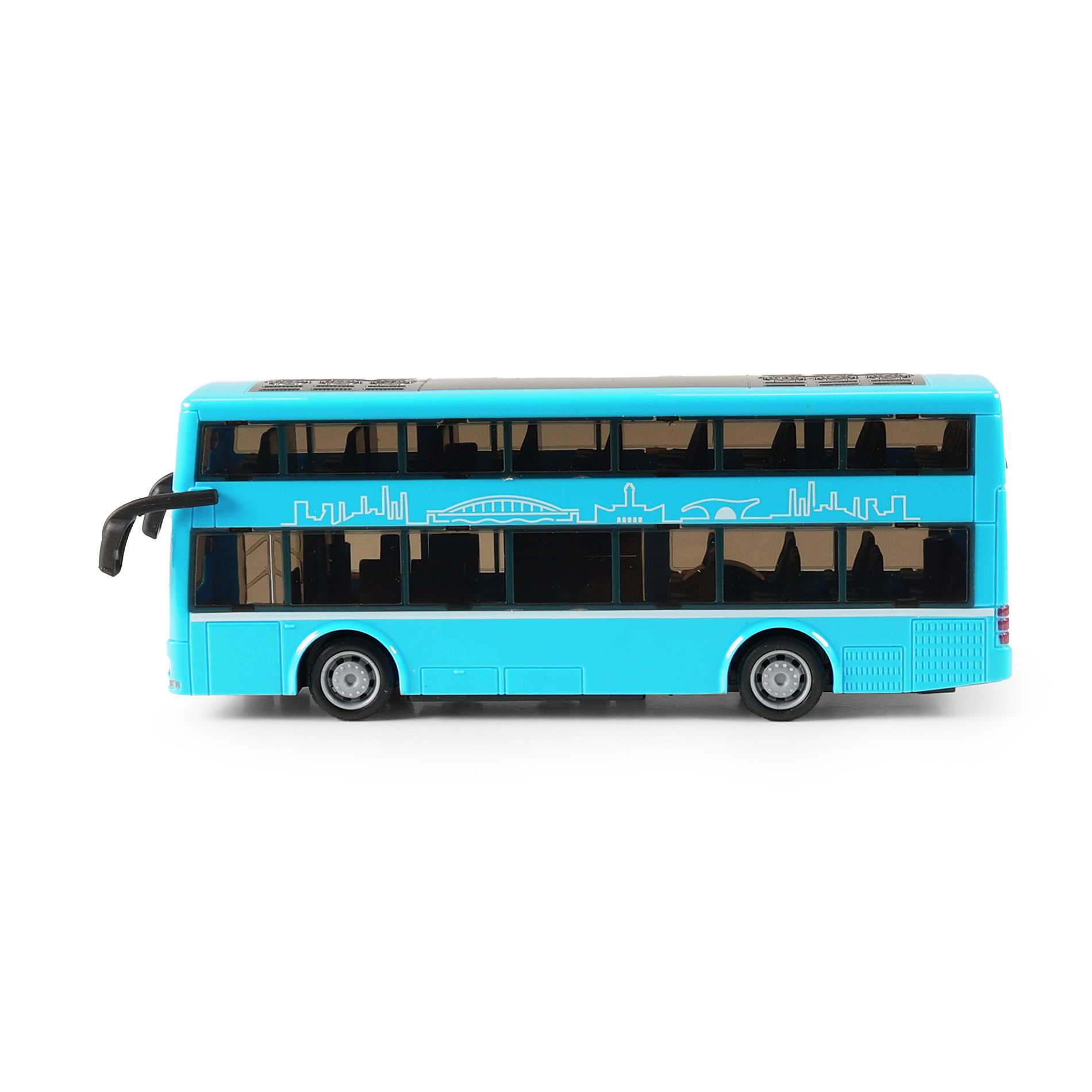Moderní dvoupodlažní autobus v modré barvě, který jezdí na setrvačník je perfektním dárkem pro všechny nadšence hromadné dopravy. Dveře lze manuálně otevřít a zavřít. Autobus je vyrobený z plastu, je dlouhý cca 20 cm a je velmi podobný autobusu, který jezdí ulicemi v Ostravě. Tato hračka byla vyrobena ve spolupráci s Dopravním podnikem města Ostravy a městem OSTRAVA!!!