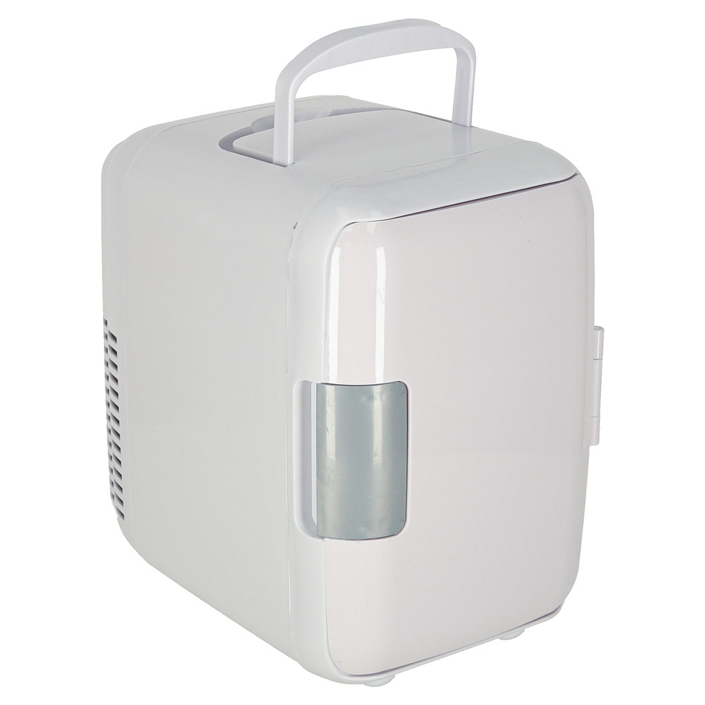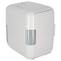 Bílá turistická lednice s ergonomickou konstrukcí udržuje teplotu jak chlazených, tak ohřátých produktů. Lze ji připojit k tradiční zásuvce a zásuvce automobilového zapalovače.