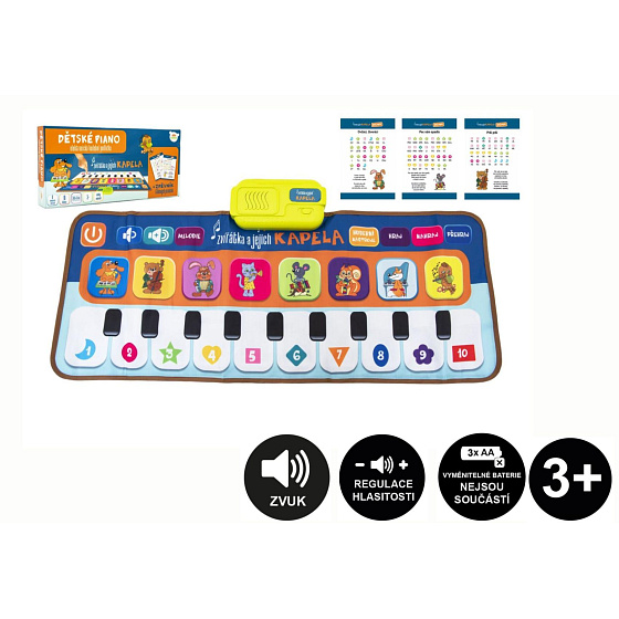 Elektronická hrací podložka pianko Zvířátka a jejich kapela 80x37cm na baterie CZ v krabici 38x18cm