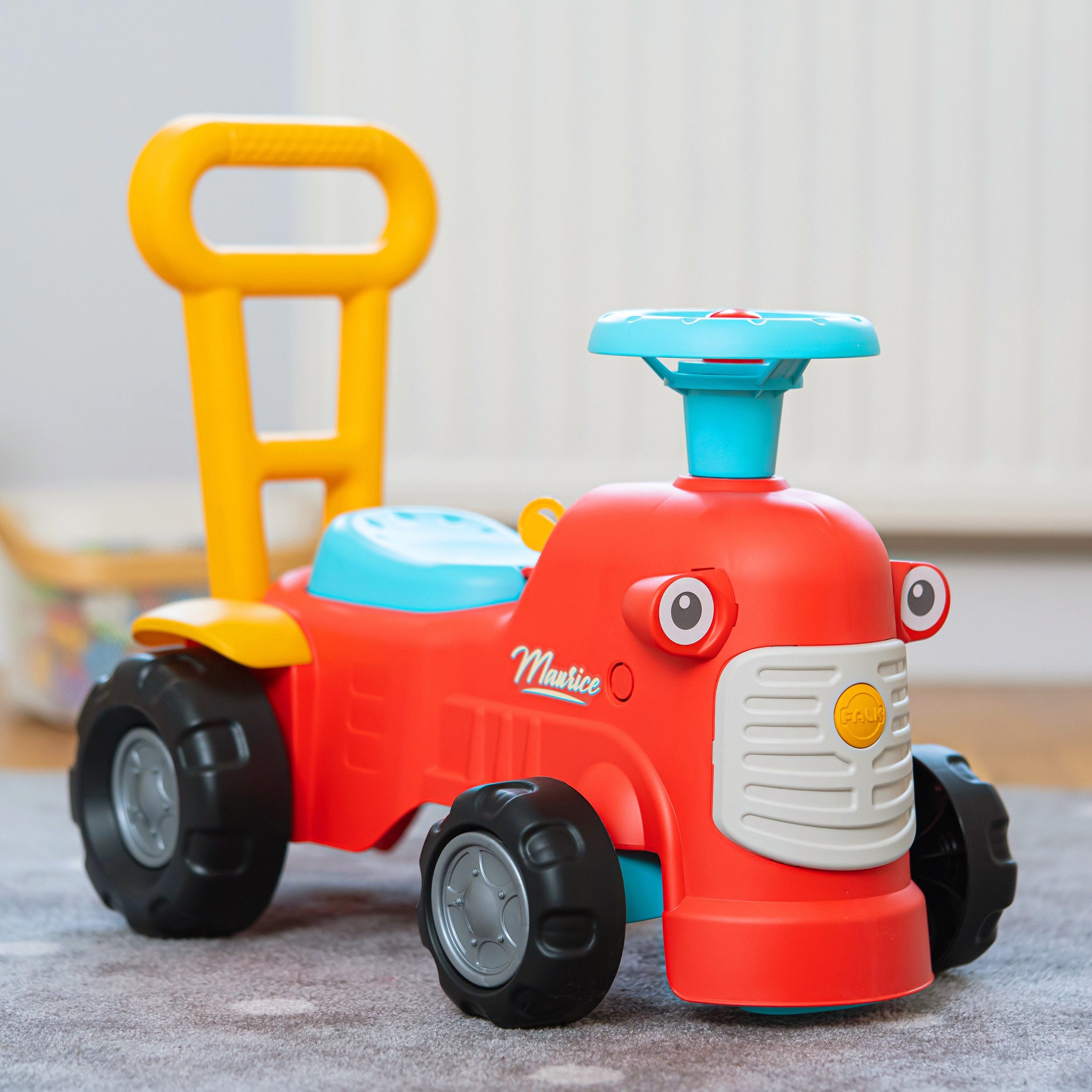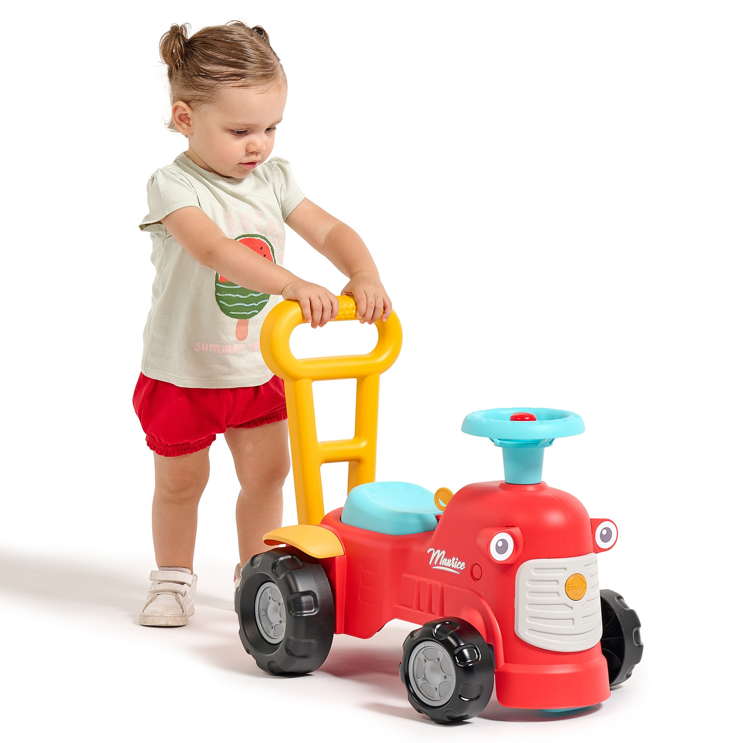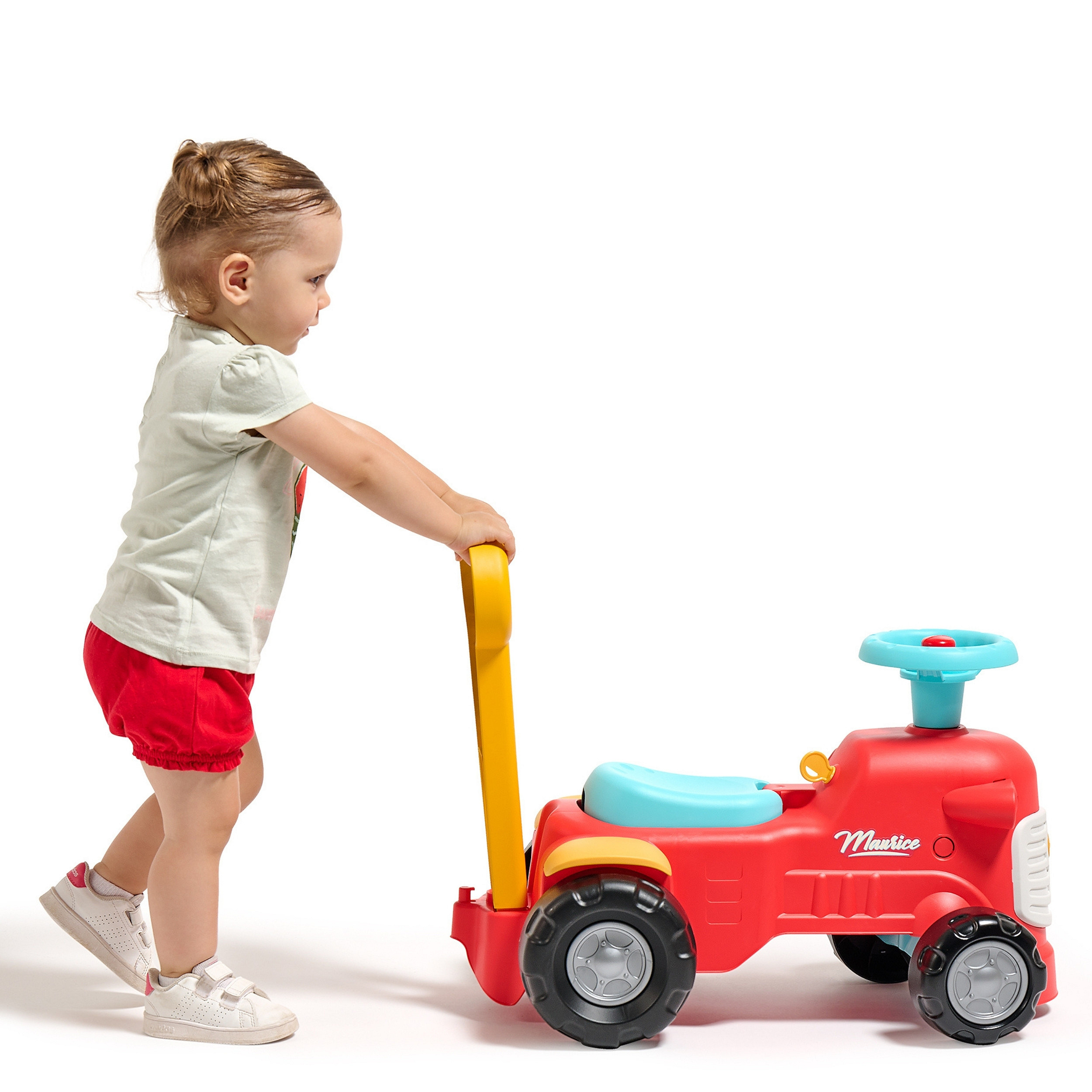 Uroczy i pełen pomysłowości jeździk traktorek Maurice w odcieniu koralowej czerwieni to idealny towarzysz dla dzieci od 12 miesięcy, wspierający je aż do stawiania pierwszych kroków. Dzięki ergonomicznej rączce do pchania zabawka świetnie pomaga maluchom w nauce chodzenia. Ten wyjątkowy pojazd został wyprodukowany we Francji z wykorzystaniem ponad 90% plastiku pochodzącego z recyklingu. Posiada kierownicę wyposażoną w klakson oraz klikający kluczyk dźwiękowy, co gwarantuje mnóstwo angażującej zabawy i stymulacji dla najmłodszych.