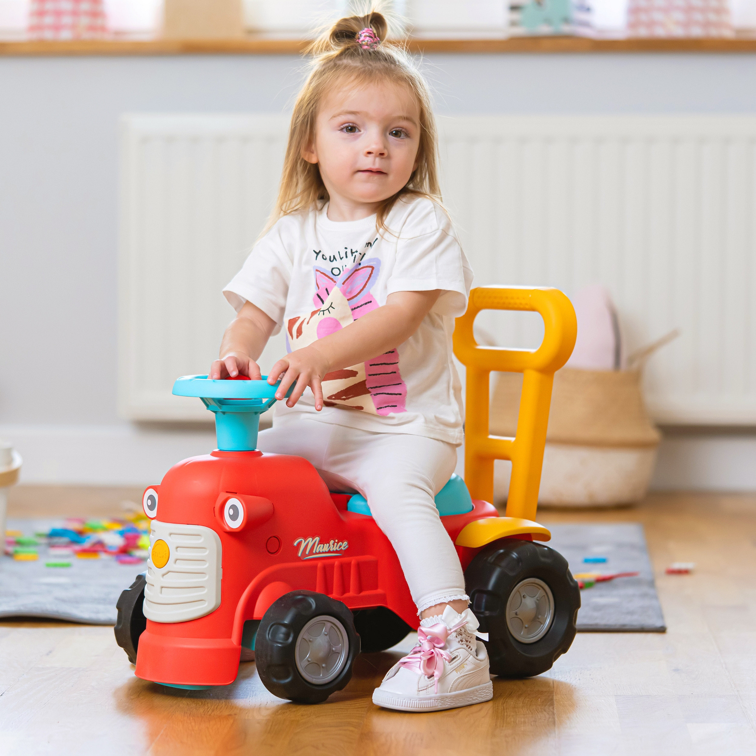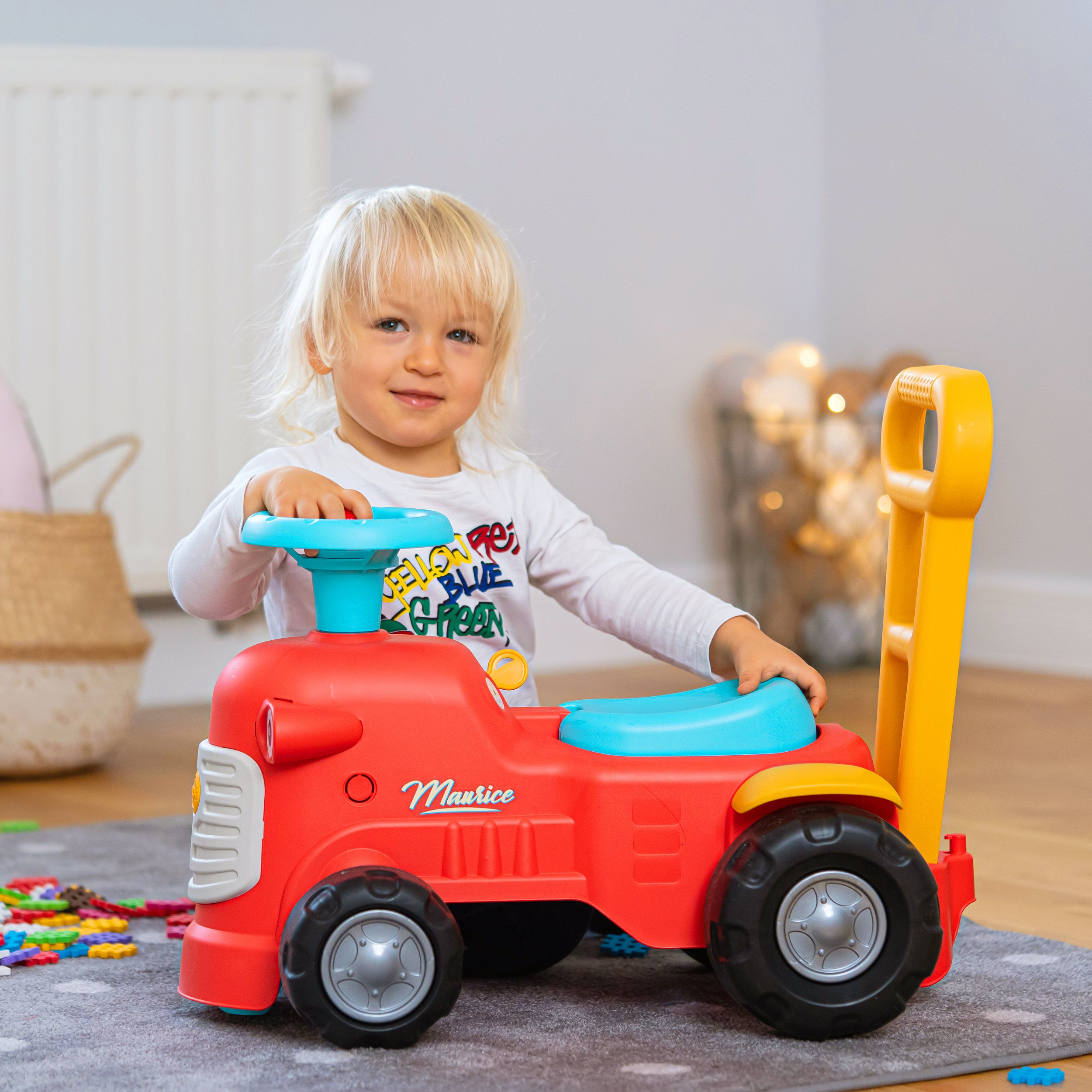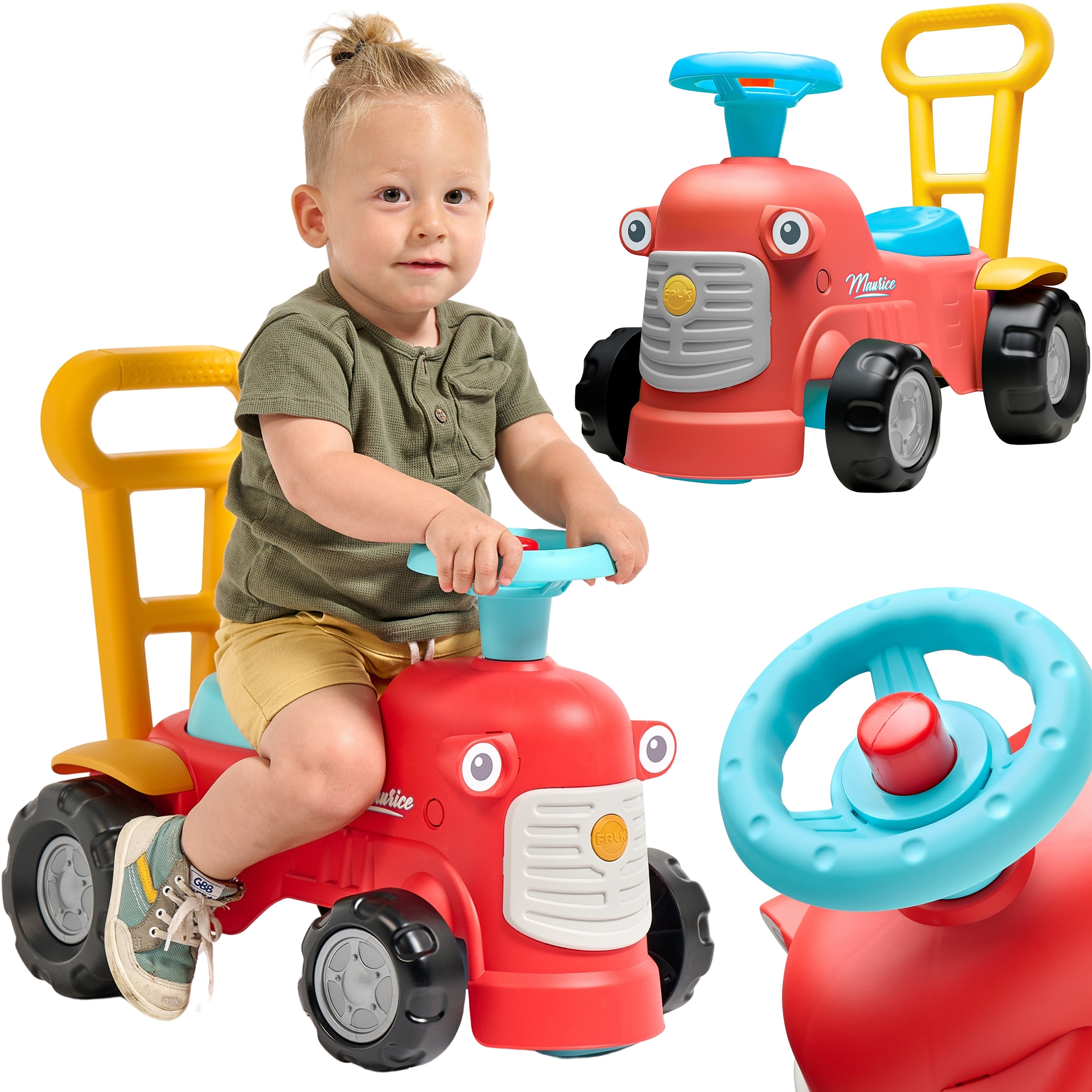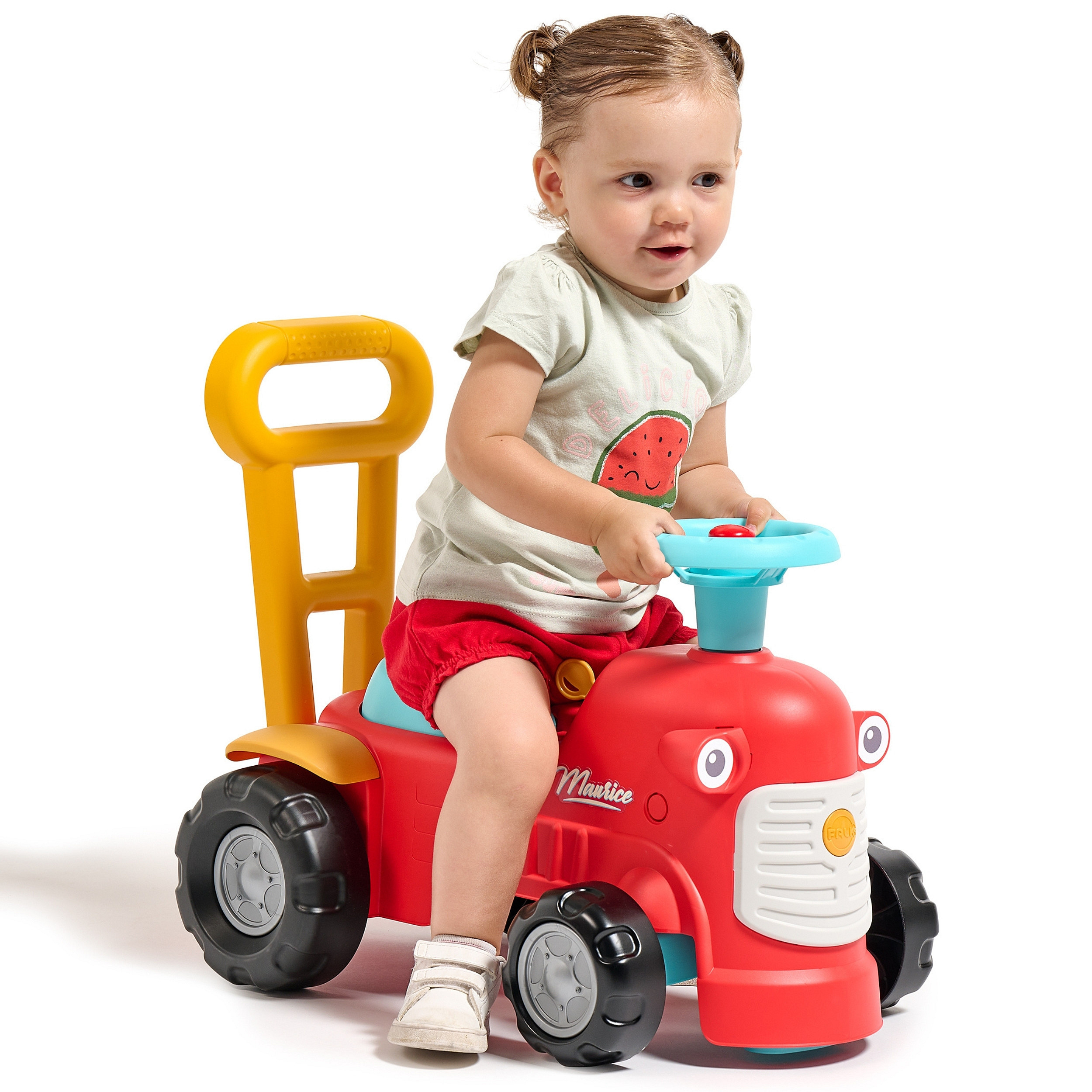 Uroczy i pełen pomysłowości jeździk traktorek Maurice w odcieniu koralowej czerwieni to idealny towarzysz dla dzieci od 12 miesięcy, wspierający je aż do stawiania pierwszych kroków. Dzięki ergonomicznej rączce do pchania zabawka świetnie pomaga maluchom w nauce chodzenia. Ten wyjątkowy pojazd został wyprodukowany we Francji z wykorzystaniem ponad 90% plastiku pochodzącego z recyklingu. Posiada kierownicę wyposażoną w klakson oraz klikający kluczyk dźwiękowy, co gwarantuje mnóstwo angażującej zabawy i stymulacji dla najmłodszych.
