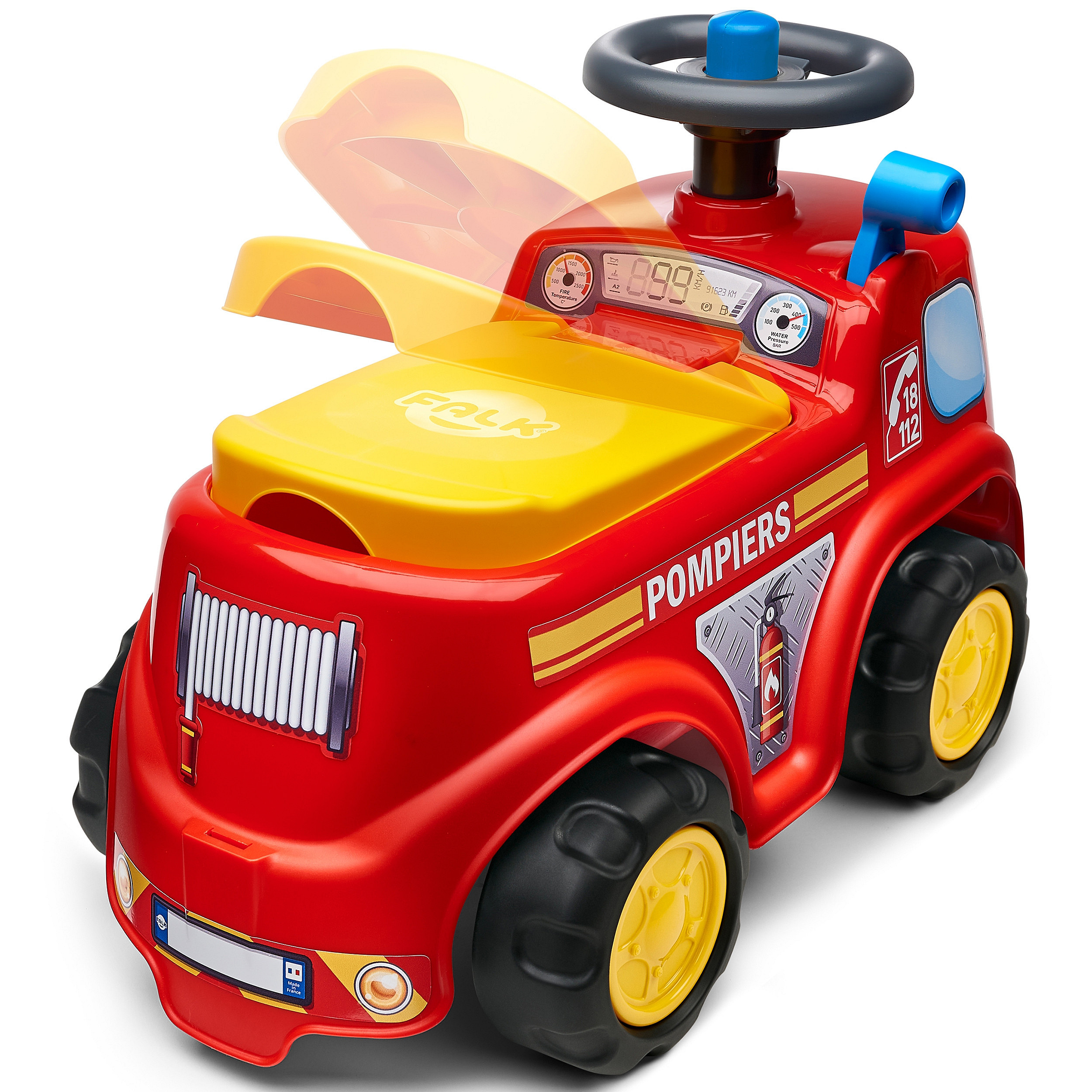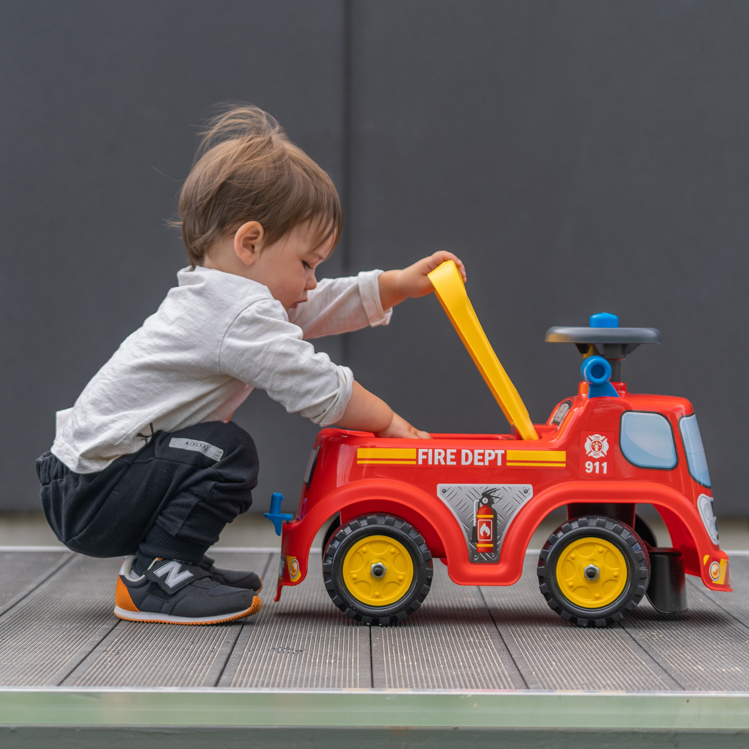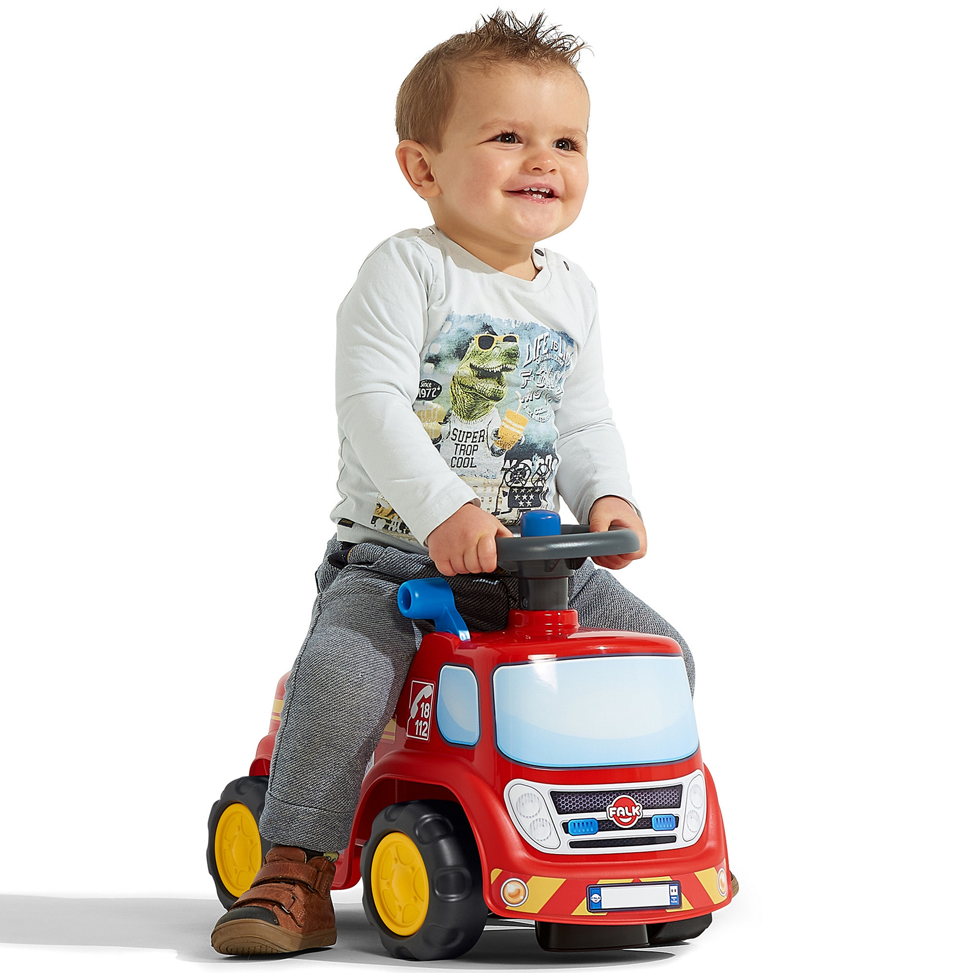 Gotowi do akcji? Wóz strażacki Fireman to idealny pierwszy pojazd dla każdego małego bohatera! Ten wyjątkowy jeździk dziecięcy został stworzony z myślą o bezpieczeństwie, zabawie i rozwoju maluchów już od 12 miesiąca życia. Wyposażony w ergonomiczną kierownicę z klaksonem, pozwala dziecku na łatwe manewrowanie, rozwijając przy tym koordynację ruchową i zdolności motoryczne. To nie tylko zabawa – to prawdziwy trening sprawności! Pod wygodnym siedziskiem znajduje się praktyczny schowek, w którym mały strażak może przewozić swoje skarby, zabawki lub sprzęt ratunkowy. Dodatkową atrakcją jest ruchoma dźwignia, która wprowadza dziecko w świat symulacji prawdziwej akcji ratunkowej, rozbudzając wyobraźnię i kreatywność. Personalizacja? Jak najbardziej! Dzięki tablicy rejestracyjnej, rodzic lub dziecko może nadać pojazdowi własne imię – to świetna okazja, by wóz stał się naprawdę wyjątkowy.