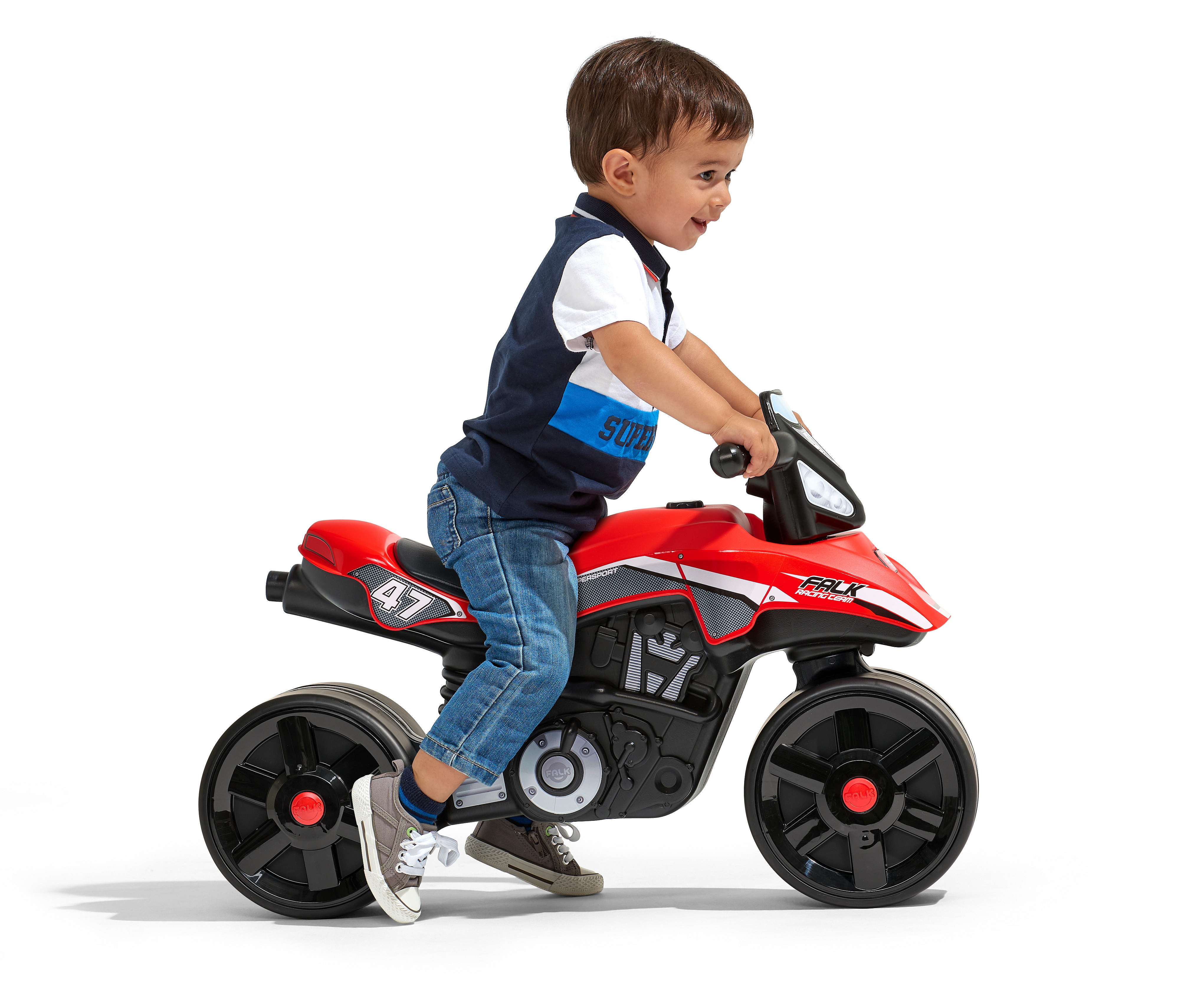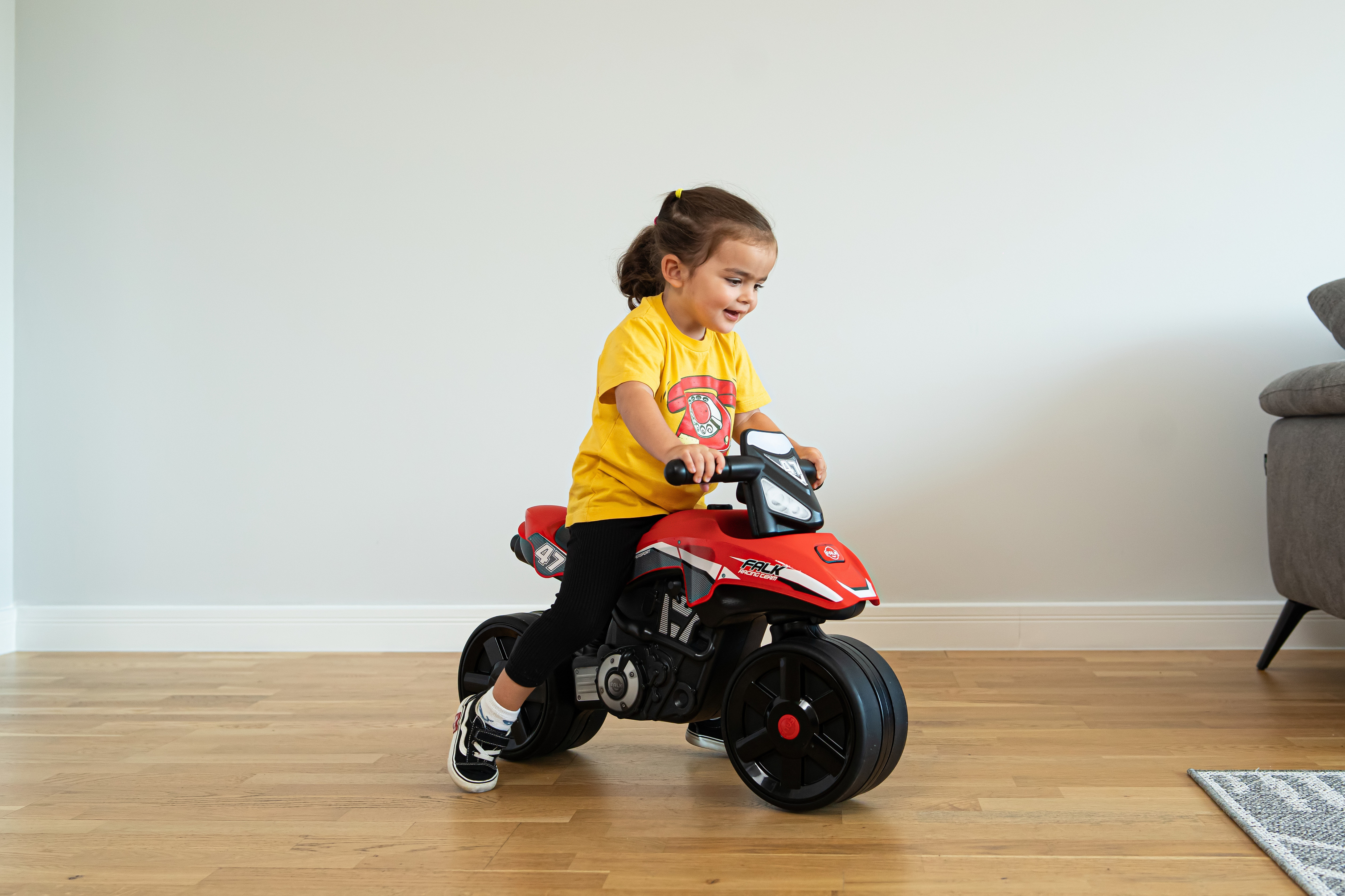 Przygotuj się na niesamowite emocje z wyścigowym jeździkiem Moto Falk w kolorze czerwonym! Ten sportowy motocykl biegowy został specjalnie zaprojektowany dla dzieci w wieku od 2 do 5 lat, które szukają mocnych wrażeń. Wyprodukowany w całości we Francji, pojazd składa się w dużej części z plastiku pochodzącego z recyklingu, co stanowi świetny krok w stronę ochrony środowiska. Dzięki szerokim kołom zabawka zapewnia niezbędną stabilność, pozwalając maluchowi na całkowicie bezpieczne rozwijanie równowagi oraz zdolności motorycznych.
