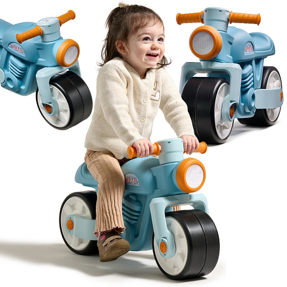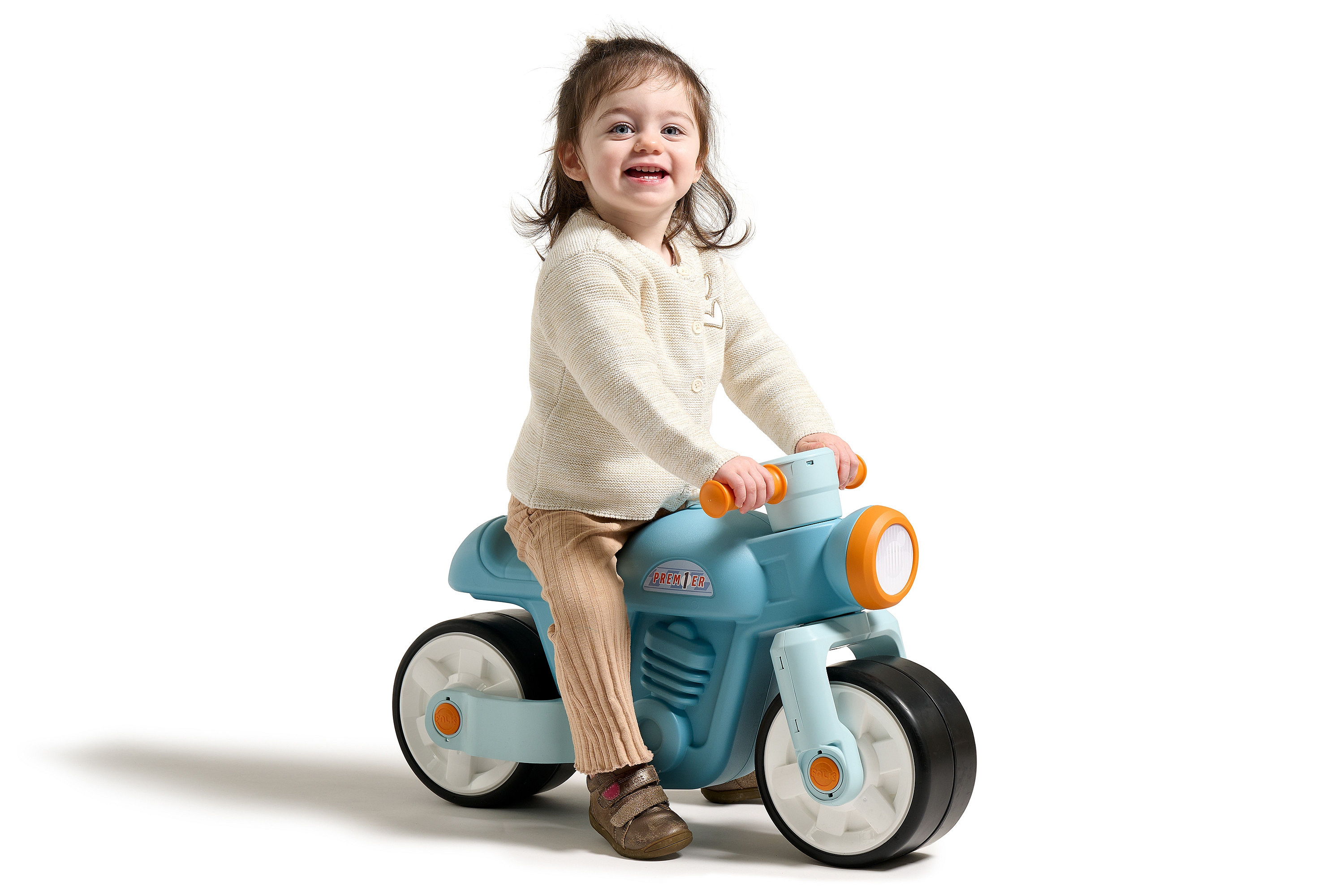 FALK Jeździk Moto Premier to wyjątkowy pojazd w stylu vintage, który łączy w sobie retro design z nowoczesnym wykonaniem. Ten odważny motocykl został zaprojektowany z myślą o najmłodszych użytkownikach, oferując im nie tylko świetną zabawę, ale i pełne bezpieczeństwo. Pojazd jest w 100% wyprodukowany we Francji z wysokiej jakości tworzyw sztucznych pochodzących z recyklingu, co podkreśla dbałość marki o środowisko naturalne. Wyposażony w szerokie, ciche i antypoślizgowe koła, zapewnia doskonałą stabilność, która jest kluczowa podczas nauki utrzymywania równowagi. Dodatkowym atutem są koła typu "whisper", które nie zostawiają śladów na podłodze, dzięki czemu jeździk idealnie nadaje się do użytku zarówno wewnątrz domu, jak i na zewnątrz.