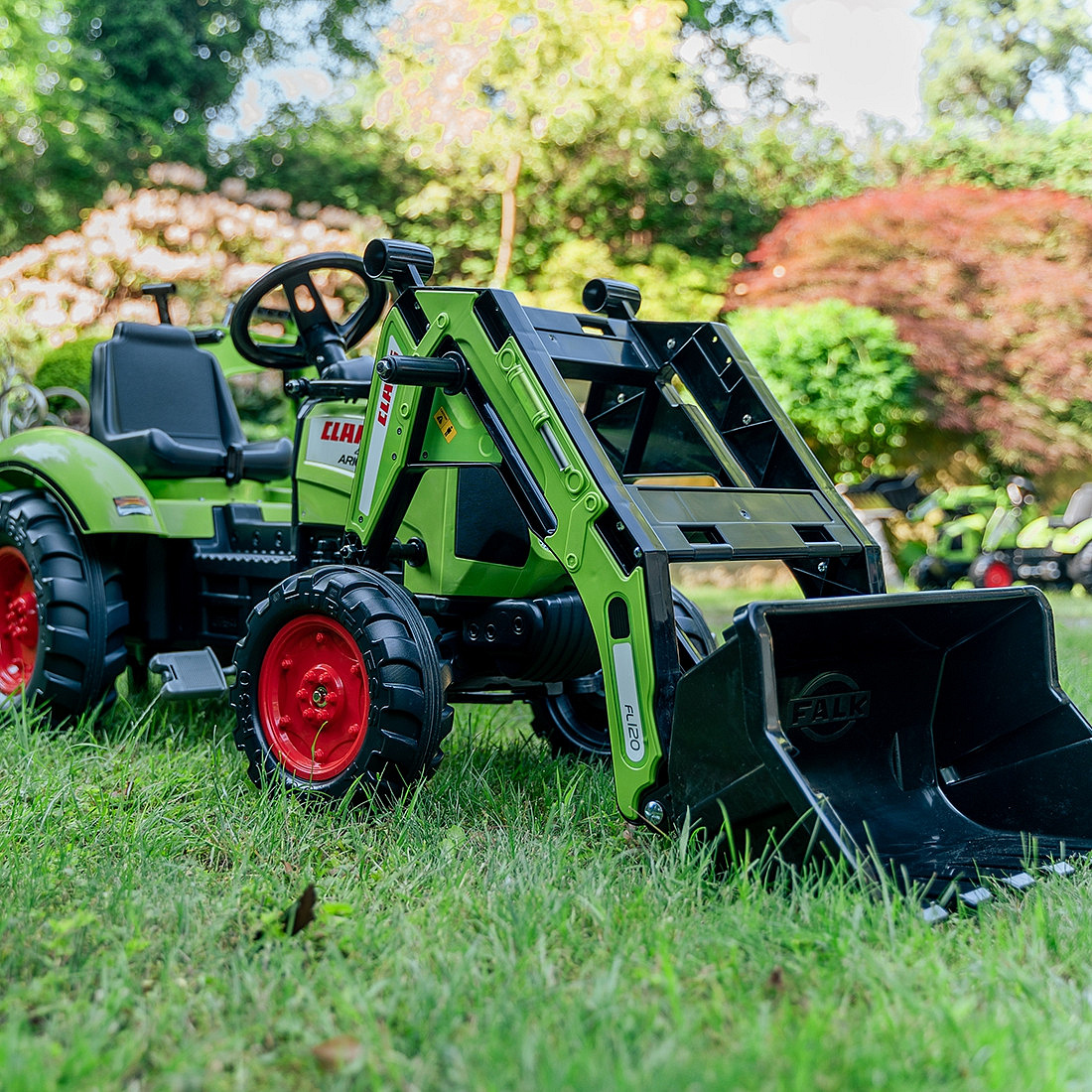 Šlapací traktor Claas Axos 330 je impozantní sada od značky FALK, která je věrnou replikou skutečného zemědělského stroje. Označený referenčním číslem 2070W, toto všestranné vozidlo bylo vytvořeno pro děti ve věku od 3 do 7 let. Jedná se o skutečnou zábavní platformu typu "vše v jednom", vyrobenou ze 100% ve Francii. Produkt patří do řady Eco Design a vyznačuje se ekologickým přístupem – podle označení na obalu je vyroben z více než 65 % z recyklovaného plastu, přičemž neobsahuje BPA, ftaláty a PVC. Ten traktor je snem každého malého stavitele. Je vybaven sedadlem otočným o 360°, které umožňuje dítěti rychle změnit roli z řidiče na operátora bagru. Vepředu stroje se nachází plně funkční nakladač, a vzadu pohyblivý bagr (rýpadlo). K sadě je přiložen čtyřkolový přívěs typu "maxi" s vyklápěním, ideální pro přepravu velkých nákladů. Celek doplňuje volant s klaksonem, který dodává realismus každé hře na zahradě nebo na dvorku.
