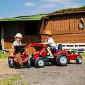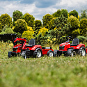 Šlapací traktor Massey Ferguson 8740S od renomované značky FALK je výkonný stroj, který nadchne každého malého fanouška zemědělství. Toto červené vozidlo, označené referenčním číslem 4010AM, je věrnou replikou originálu, navrženou pro děti ve věku od 3 do 7 let. Vyrobeno ze 100% ve Francii, spojuje vysokou kvalitu zpracování s ohledem na životní prostředí, protože bylo vyrobeno s využitím recyklovaného plastu. Solidní konstrukce z ní činí skutečnou platformu pro zábavu, připravenou na výzvy kladené "malými dobrodruhy". Vozidlo nabízí spoustu možností zábavy díky bohaté výbavě. V přední části traktoru se nachází pohyblivá, kloubová lžíce (nakladač), která umožňuje nabírání a přepravu písku, zeminy nebo listí. K sadě je přiložen prostorný přívěs s bočnicemi, ideální pro přepravu úrody nebo hraček po zahradě. Charakteristickým prvkem je bezpečnostní oblouk nacházející se za sedadlem, který dodává stroji profesionální vzhled. Pohodlné manévrování umožňuje otočný volant s vestavěným klaksonem, díky kterému může dítě varovat okolí o své přítomnosti.