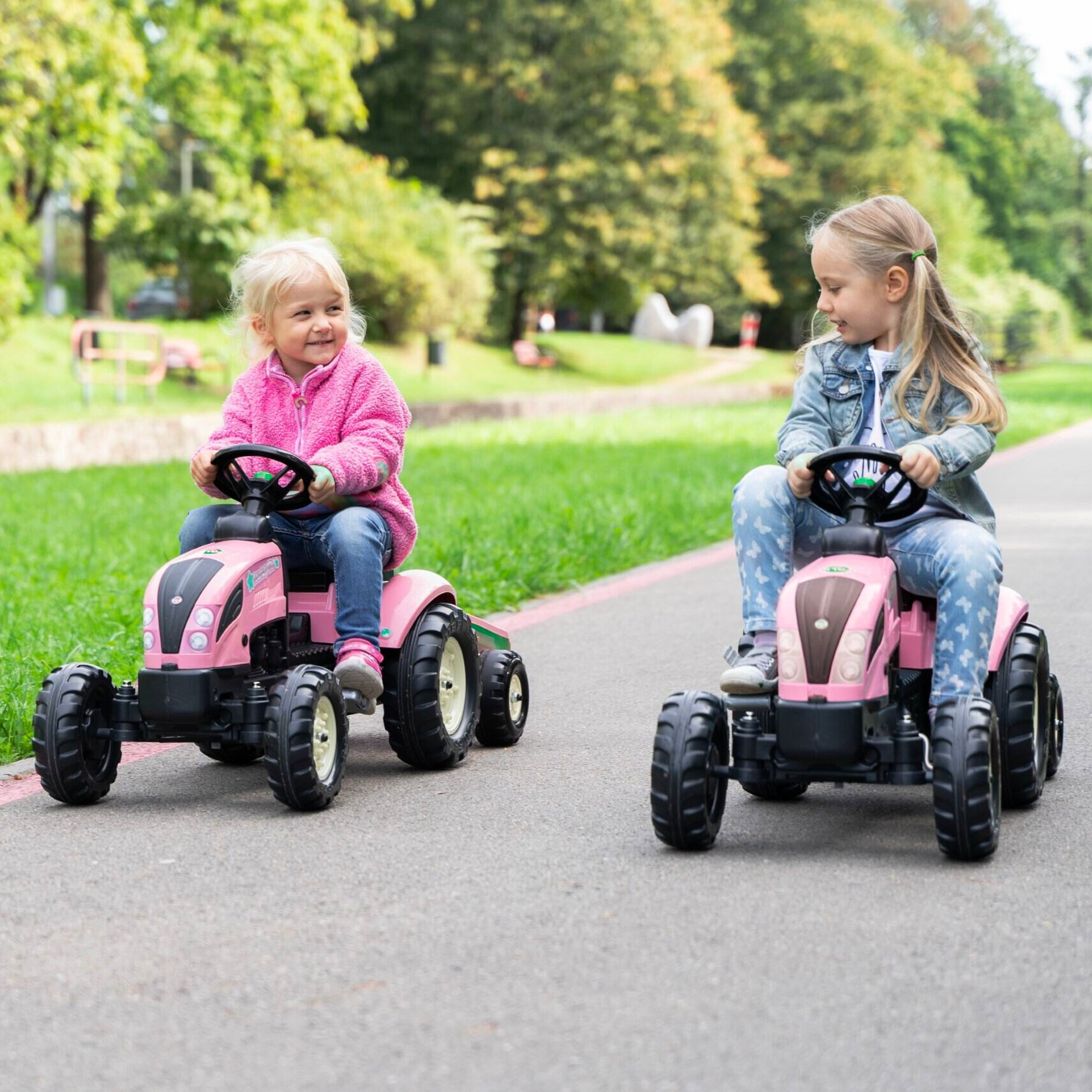 Šlapací traktor Country Star od renomované značky FALK je vysněným dárkem pro každou malou milovnici zahradních prací. Toto roztomilé, růžové vozidlo bylo speciálně navrženo pro děti ve věku od 2 do 5 let. Vyrobeno ze 100% ve Francii, kombinuje vysokou kvalitu zpracování s funkčností, která povzbuzuje k aktivnímu hraní na čerstvém vzduchu. Traktor je věrnou kopií zemědělských strojů, přizpůsobenou potřebám nejmladších. Díky přiloženému prostornému přívěsu může dítě převážet písek, listí, zeminu nebo kameny z jednoho konce zahrady na druhý, vžívajíc se do role zahradnice nebo farmářky. Vozidlo je vybaveno volantem s klaksonem, což zpestřuje zábavu a umožňuje varovat chodce. Další výhodou je personalizovaná registrační značka, která umožňuje dítěti cítit, že vozidlo je skutečně jeho vlastnictvím.