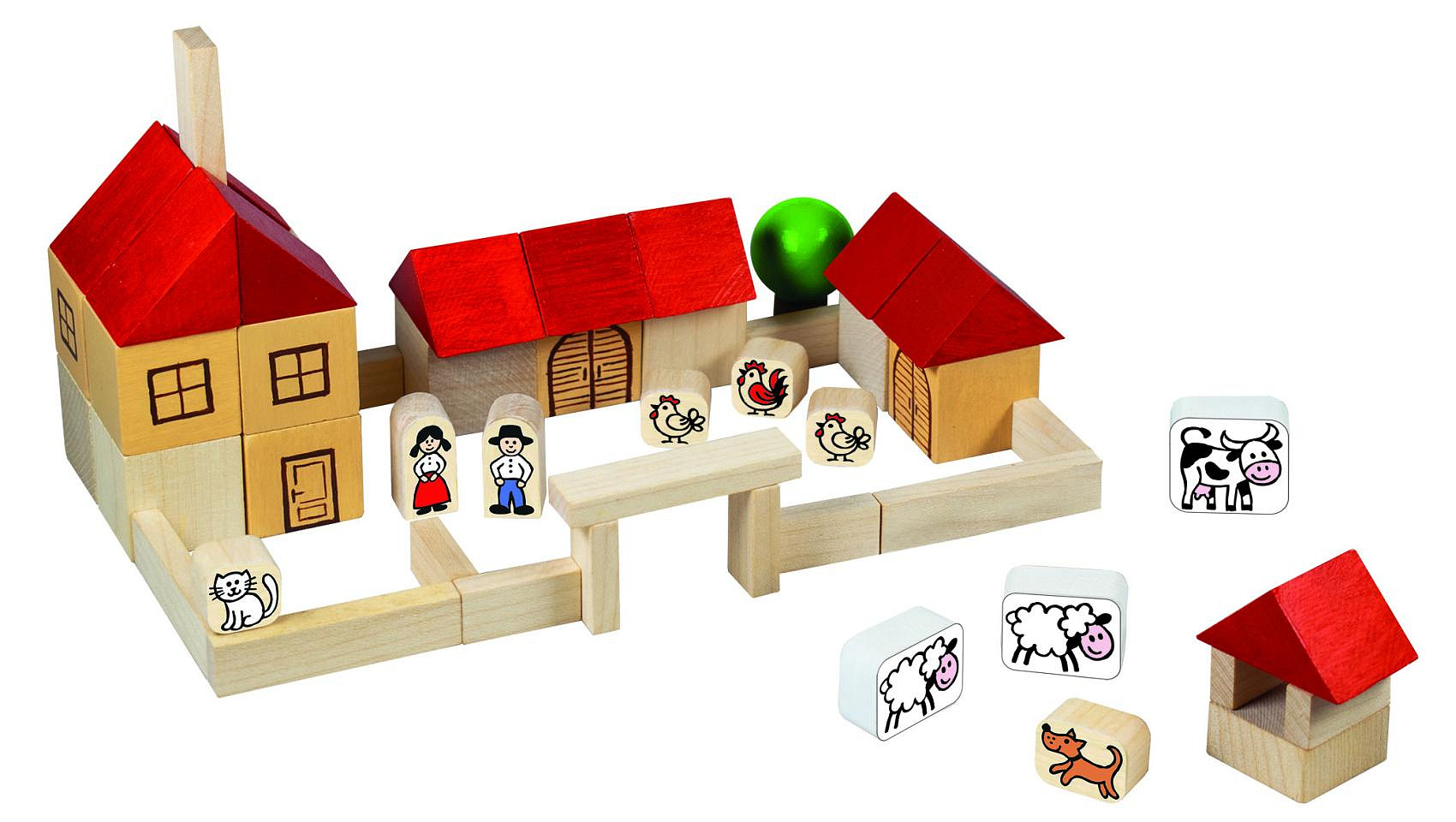 Děti budou milovat senzační farmu, kde je toho hodně k vidění a samozřejmě ke hraní. Složí si za pomoci hracích desek a dřevěných dílků domek, stodolu, ohrady. Vše je doplněné kostičkami farmáře, jeho ženy, traktoru a samozřejmě nechybí zvířátka. Balení obsahuje celkem 100 dřevěných dílků. Rozměr krabice: 30 x 20 x 6 cm Vhodné pro děti od 3 let