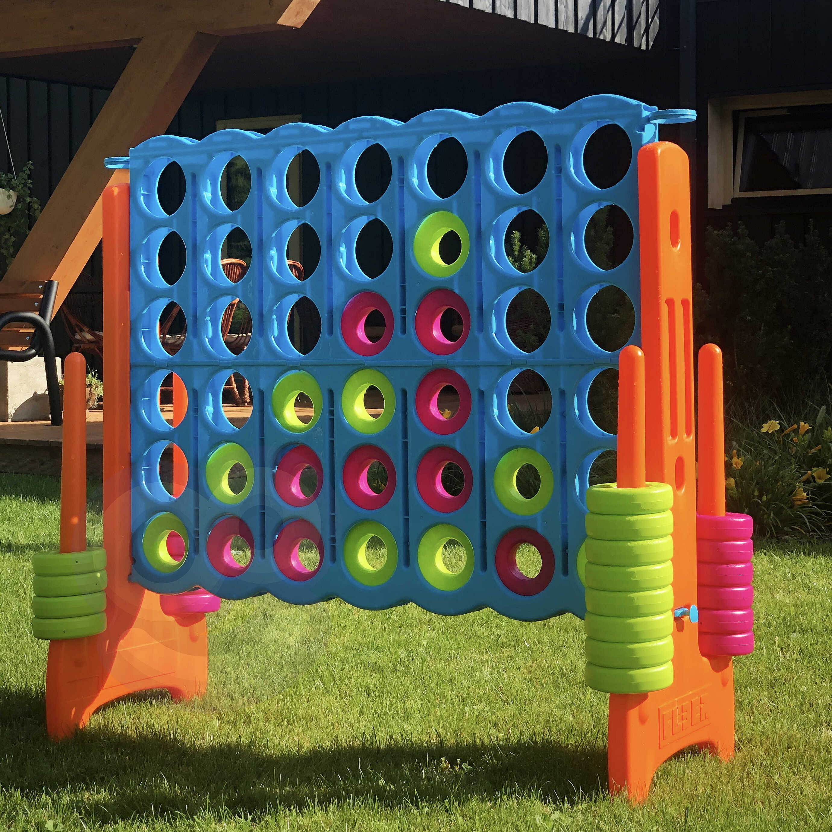 Ogromna gra 4 w linii od renomowanej marki FEBER to klasyczna gra strategiczna w wielkim formacie. Jest to idealna propozycja na wspólne spędzanie czasu z rodziną i przyjaciółmi. Zabawka została zaprojektowana tak, aby można było z niej korzystać zarówno wewnątrz pomieszczeń, jak i na zewnątrz przez cały rok. Zabawka charakteryzuje się żywymi kolorami oraz jest niezwykle odporna na działanie promieni słonecznych i gwałtowne zmiany temperatury. Dzięki przemyślanej konstrukcji, zestaw jest bardzo łatwy w montażu i demontażu, co ułatwia jego wygodne przechowywanie po zakończonej zabawie.