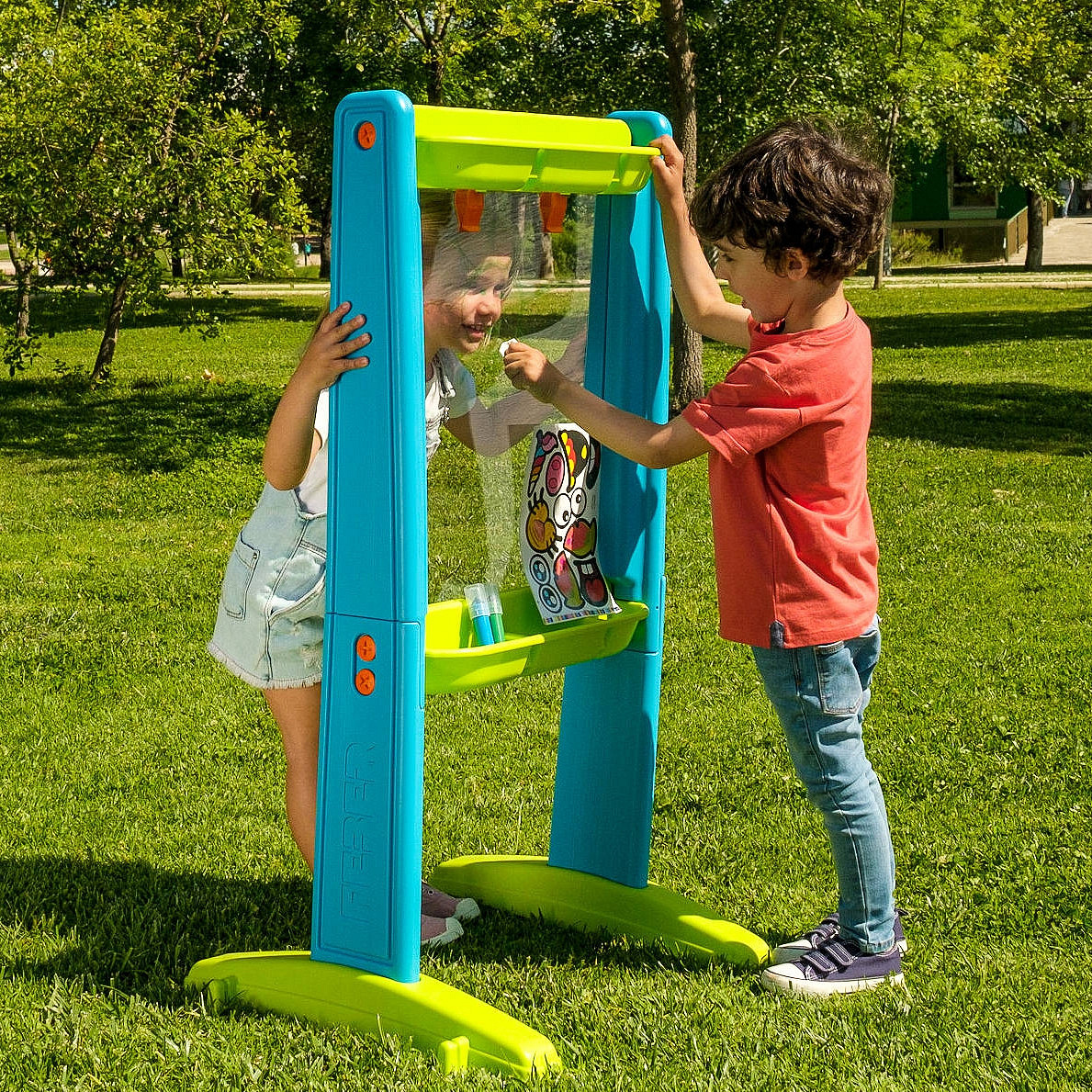 Dwustronna Przeźroczysta Tablica do Rysowania Art&Fun Board od renomowanej marki FEBER to przezroczysta i artystyczna tablica do obustronnego wykorzystania. Wyposażona jest w naklejki, które można dowolnie umieszczać na tablicy, nadając jej indywidualny charakter. Tablica zawiera specjalne łączniki, które pozwalają na umieszczanie dołączonych szablonów lub własnych rysunków. Możesz również korzystać z tablicy bez użycia szablonów.