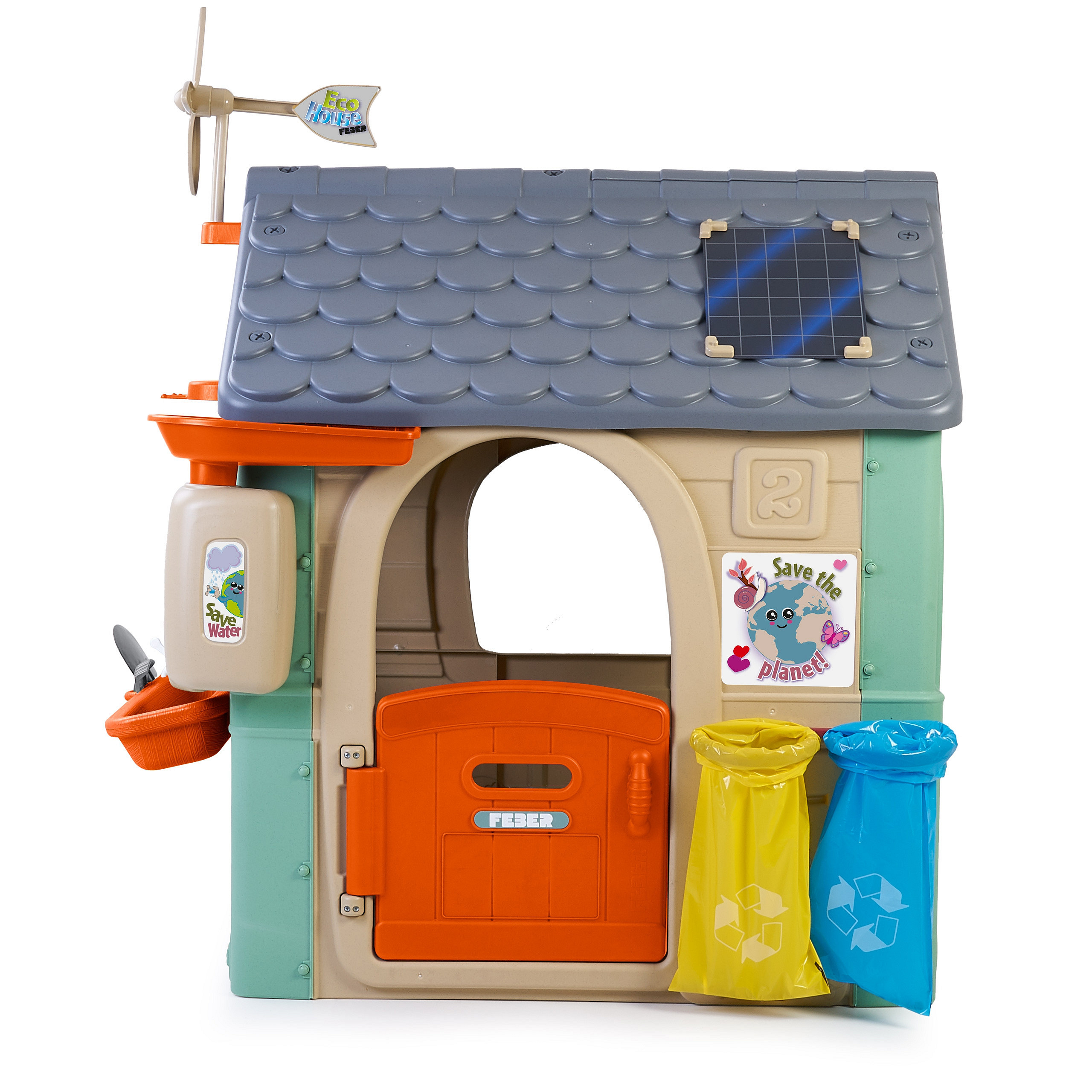 Ekologiczny Domek Edukacyjny od marki FEBER to wyjątkowa propozycja zabawy, która łączy w sobie radość z nauki o zrównoważonym rozwoju i ochronie środowiska. Ten innowacyjny domek dla dzieci został zaprojektowany z myślą o przyszłości naszej planety – wykonano go w co najmniej 90% z plastiku pochodzącego z recyklingu. Zabawa w tym domku to doskonała okazja, by przybliżyć najmłodszym tajniki natury oraz wyrobić w nich proekologiczne nawyki w niezwykle atrakcyjny sposób. Konstrukcja jest bardzo wytrzymała, a jej kolory wykazują wysoką odporność na działanie promieni słonecznych oraz zmiany temperatur, co gwarantuje wspaniały wygląd przez długi czas. Montaż domku jest intuicyjny i niezwykle prosty.