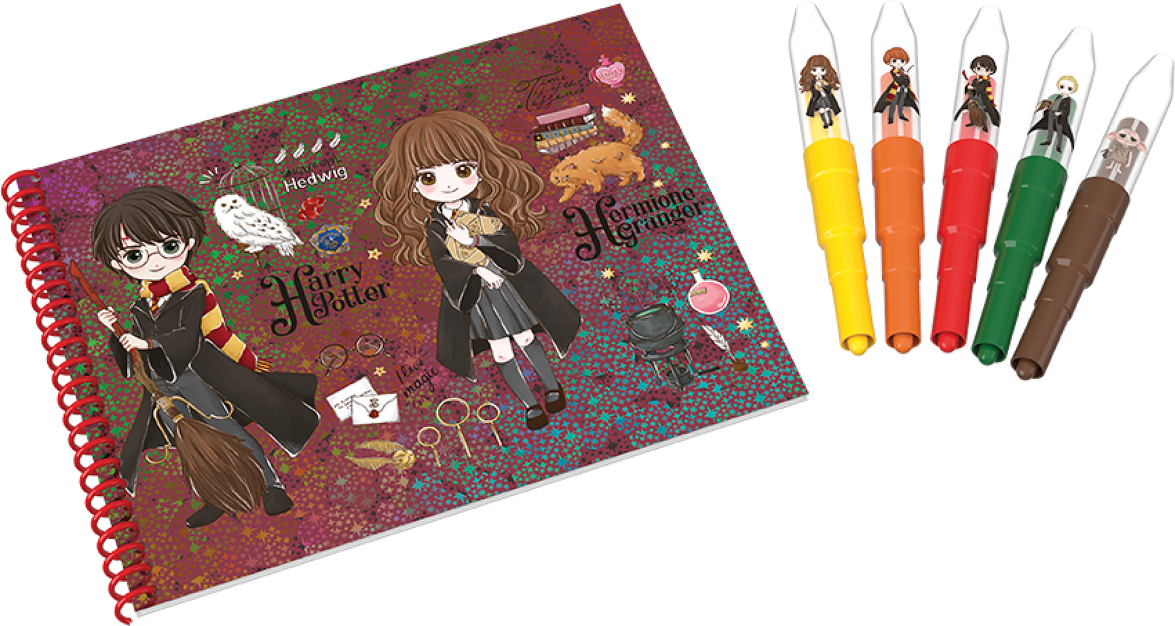 Vstup do světa čar a kouzel se sadou foukacích fixů s motivem Harryho Pottera, která potěší všechny malé výtvarníky a fanoušky Bradavic. Stačí nasadit foukací fix do držáku, fouknout – a barevný sprejový efekt je na světě. Součástí sady je také notes s předtištěnými motivy Harry Potter, který děti mohou vybarvovat nebo doplňovat vlastními výtvory.