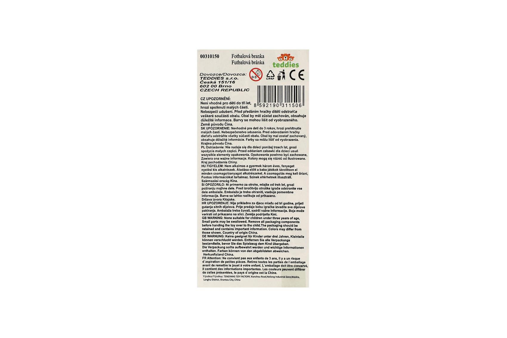 Fotbalová branka 70x56x37cm s míčkem a pumpičkou v krabici 51x13x7,5cm