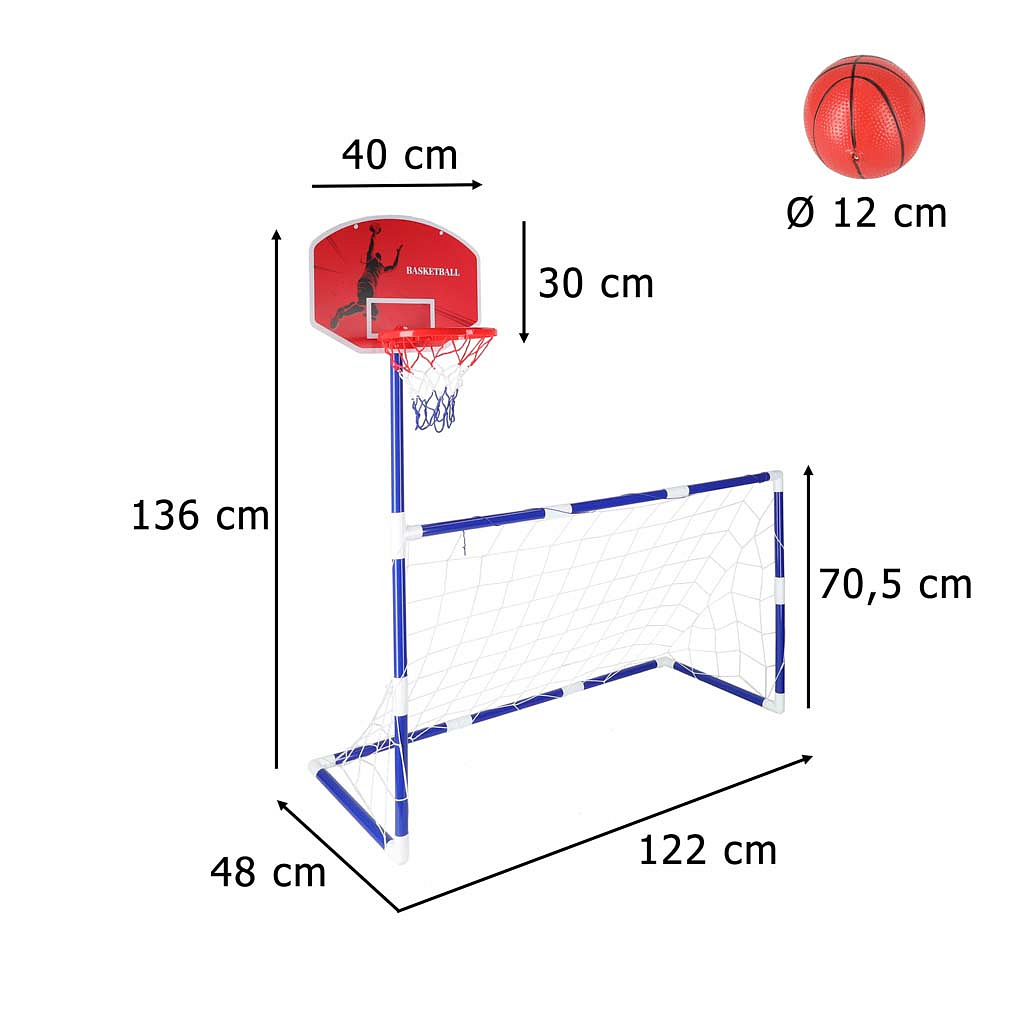 Tato kompletní sportovní sada pro děti byla vytvořena s ohledem na bezpečnost. Materiál přátelský k dětem, stabilní konstrukce a promyšlený design zajišťují, že se jedná o bezpečnou konstrukci, která vydrží i tu nejenergičtější hru, zabírající málo místa. V sestavě se nachází vše, co potřebujete - fotbalový míč, basketbalový míč, a také basketbalová deska a fotbalová branka, najdete také pumpičku na míč.