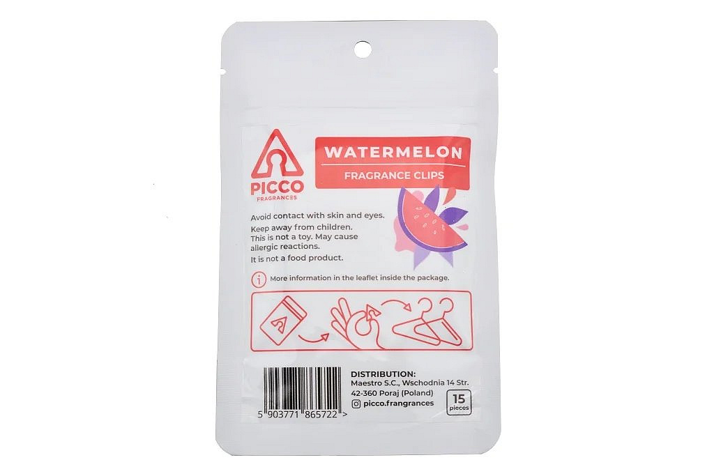 Popis Fragrance clips PICCO, vůně do auta a šatníku - Vodní meloun